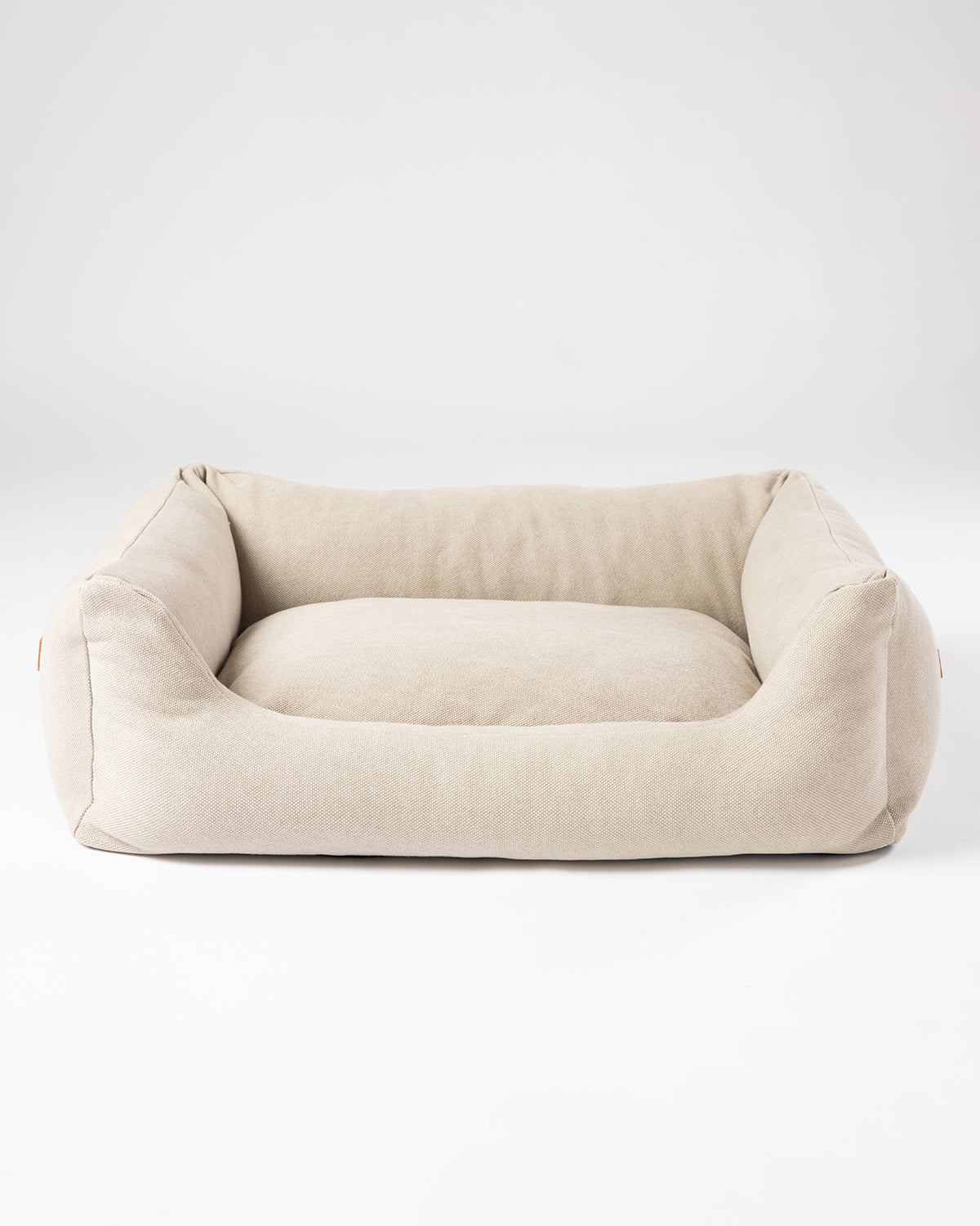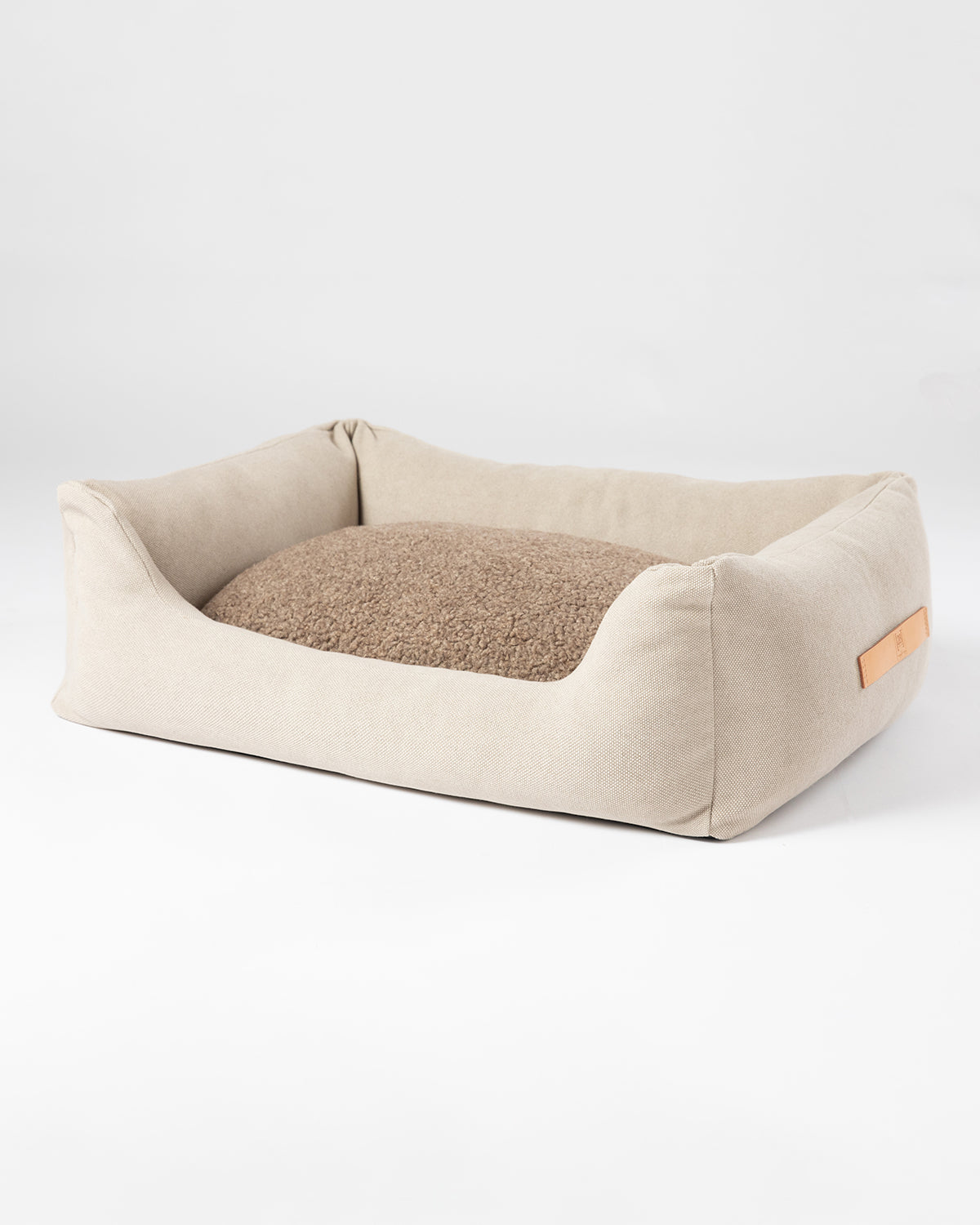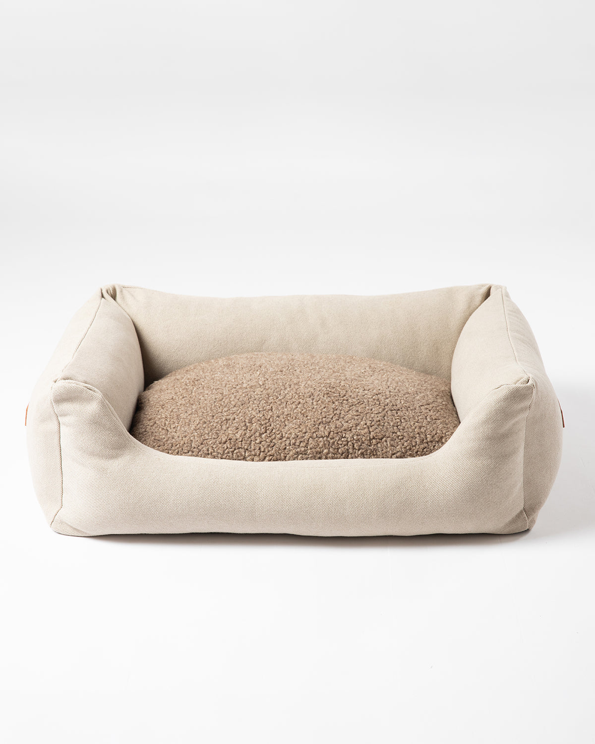 היא מרופדת בכותנה אורגנית (The Organic Cotton Collection), טקסטיל רך ונעים למגע אך עם זאת עמיד מאוד. הכרית הפנימית דו-צדדית, צדה האחד עשוי צמר Bouclé רך והצד השני בד כותנה אורגנית תואם לריפוד. המילוי נשלף (מה שמקל על הניקוי) ועשוי מחומר אנטי-טפילי, והשכבה התחתונה מצופה חומר המונע מהמיטה להחליק ושומר על הרצפה.