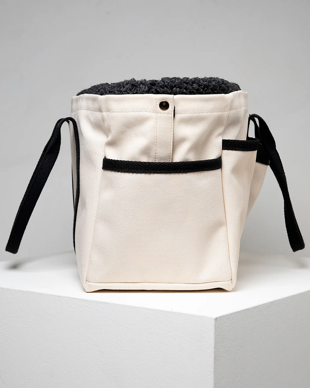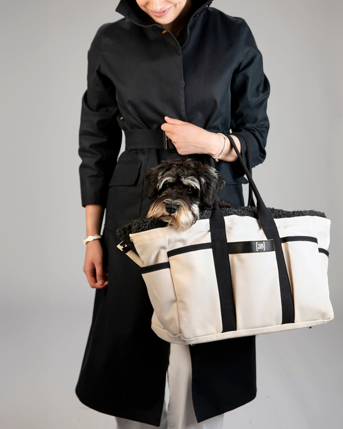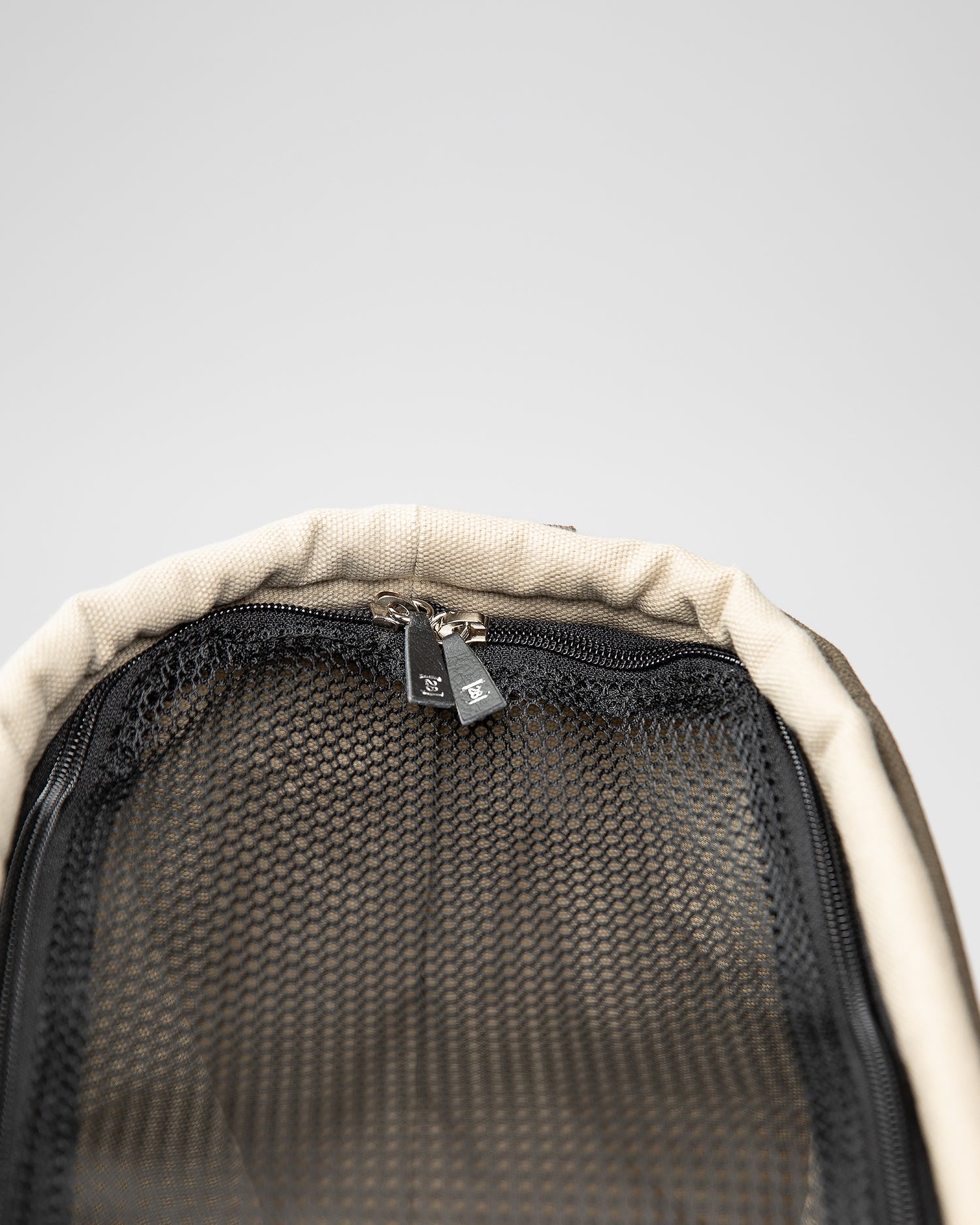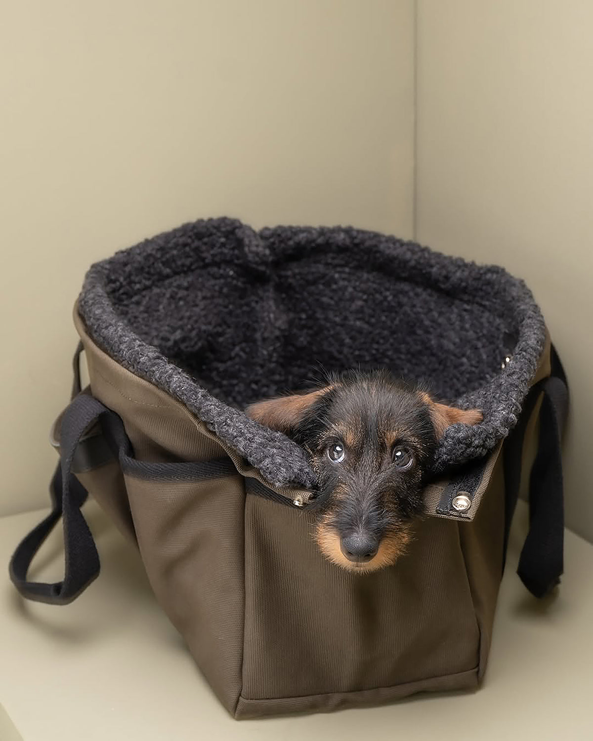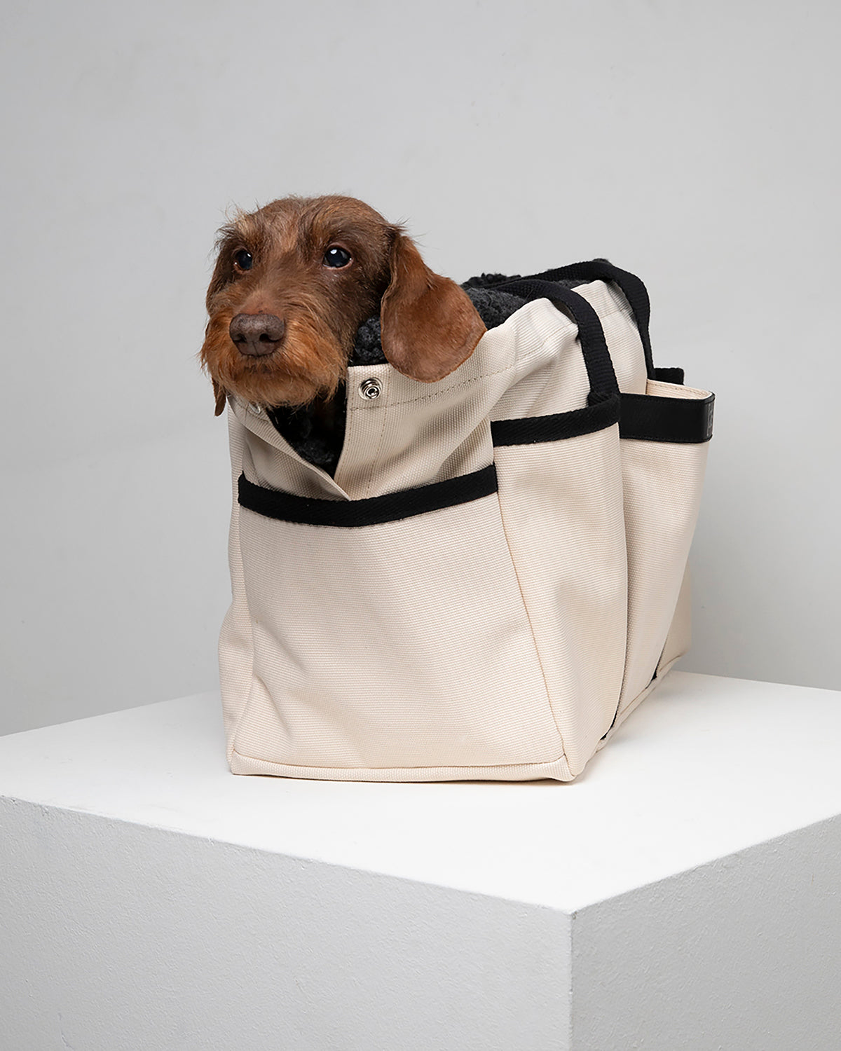 החלק החיצוני עשוי כותנה מטופלת עבה במיוחד (Treated Stain Resistance) בעלת עמידות לכתמים. התיק עתיר כיסים ותאים נסתרים, ושואב השראה מתיקי גננים פונקציונליים ועמידים. הוא רב־שימושי – מתאים לנשיאת כלב עד 8 ק"ג, וגם כתיק עבודה או פנאי.