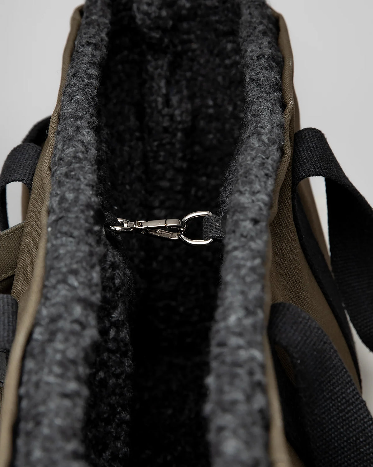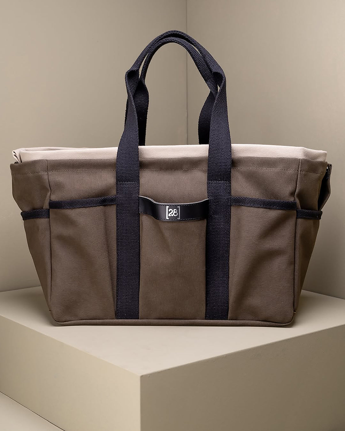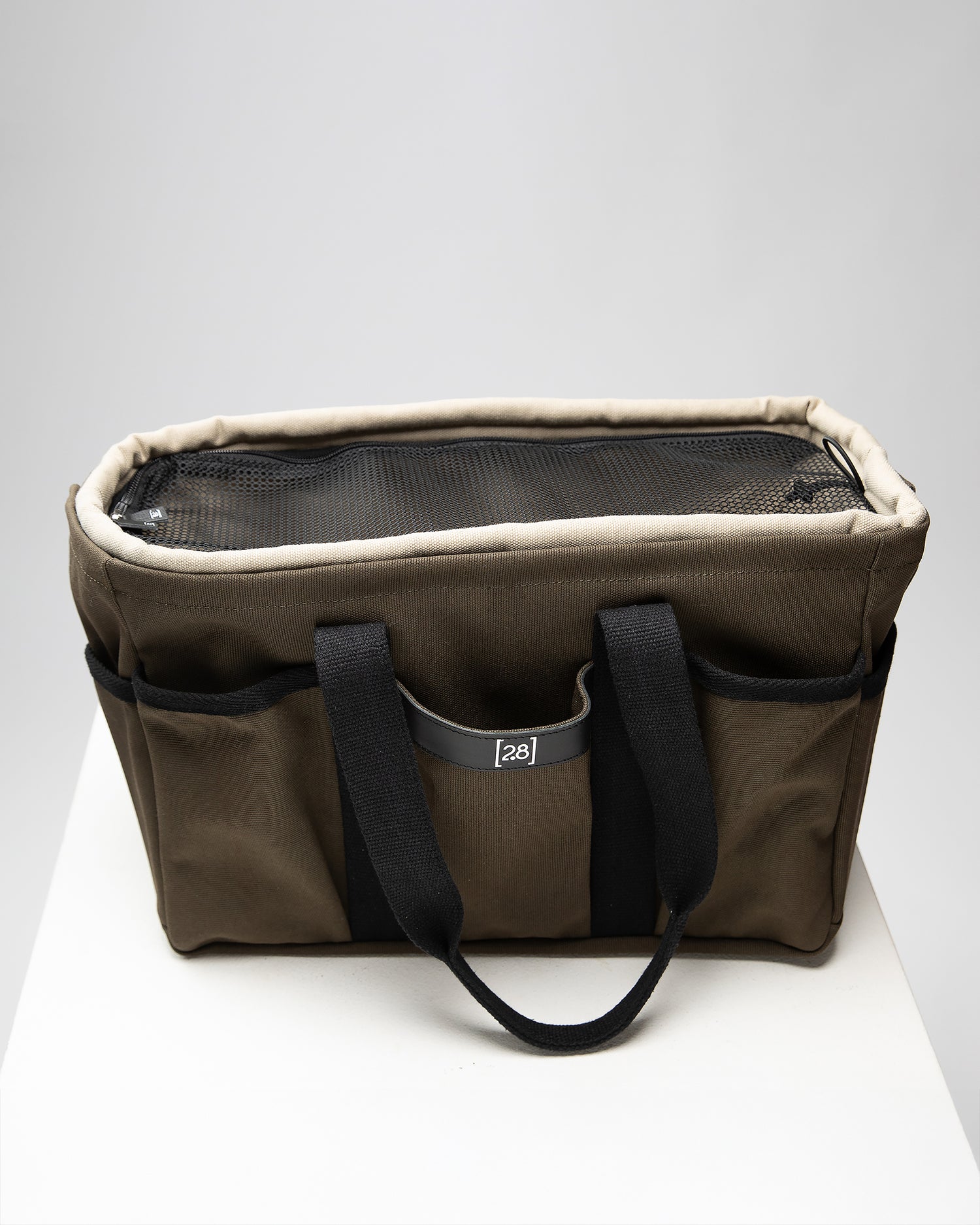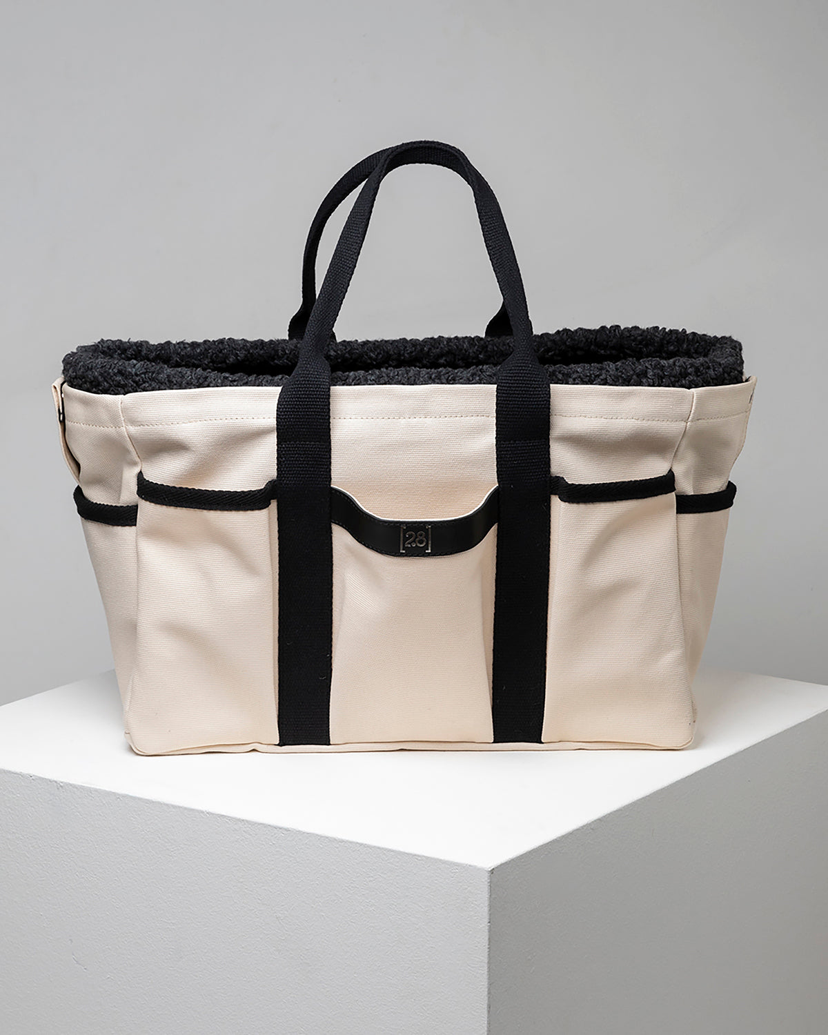 החלק החיצוני עשוי כותנה מטופלת עבה במיוחד (Treated Stain Resistance) בעלת עמידות לכתמים. התיק עתיר כיסים ותאים נסתרים, ושואב השראה מתיקי גננים פונקציונליים ועמידים. הוא רב־שימושי – מתאים לנשיאת כלב עד 8 ק"ג, וגם כתיק עבודה או פנאי.