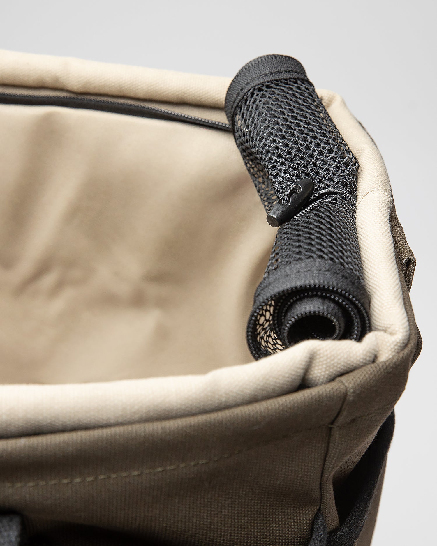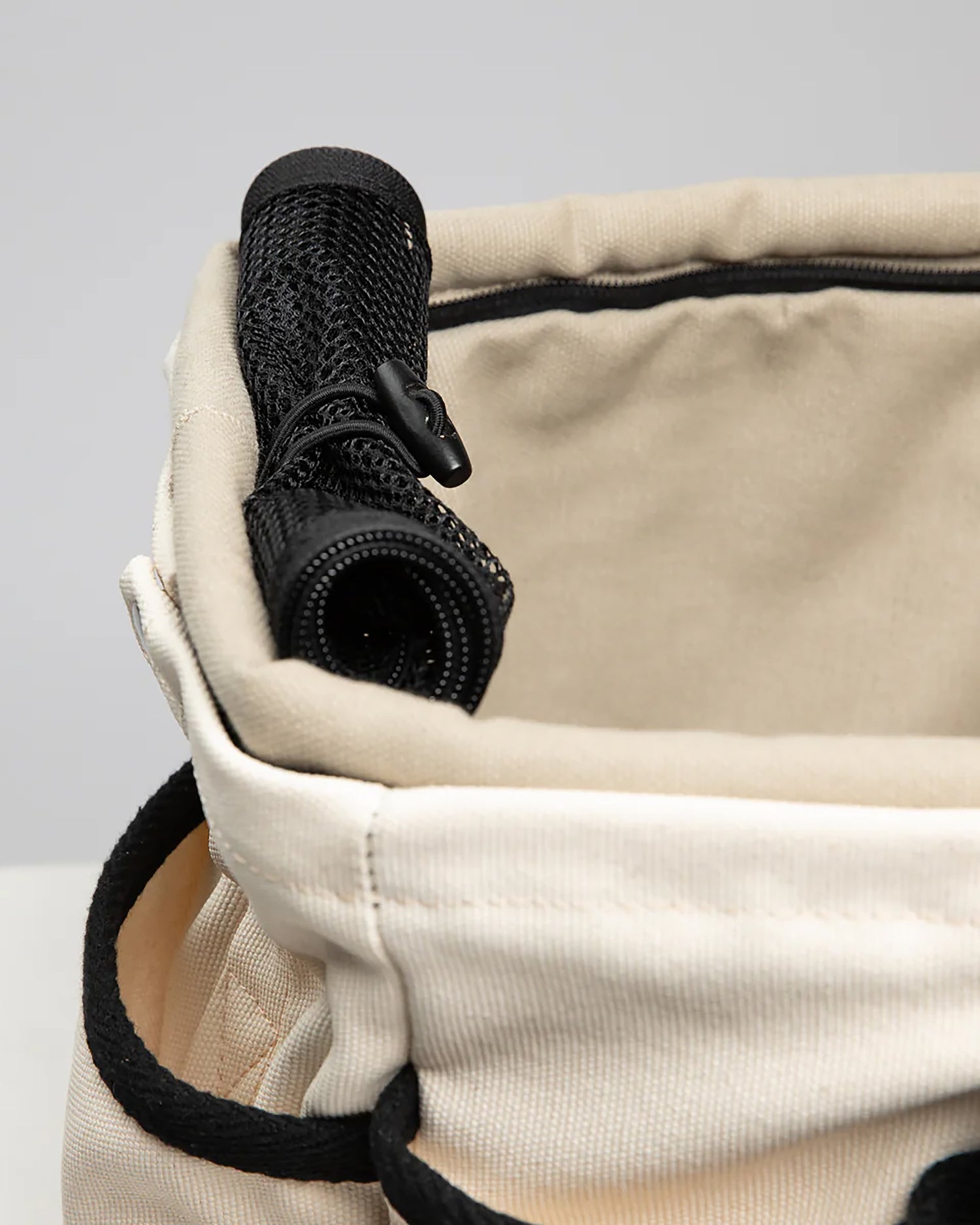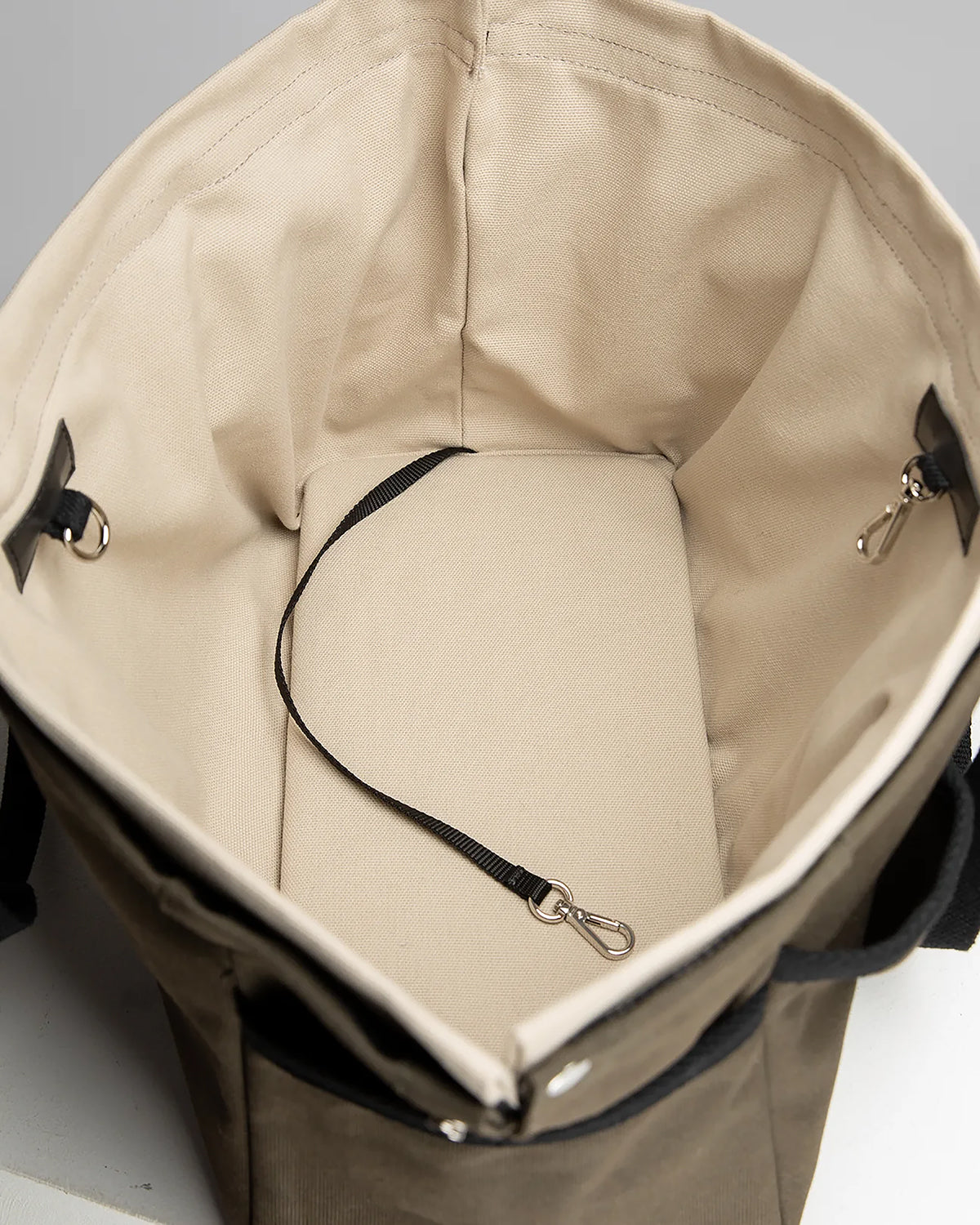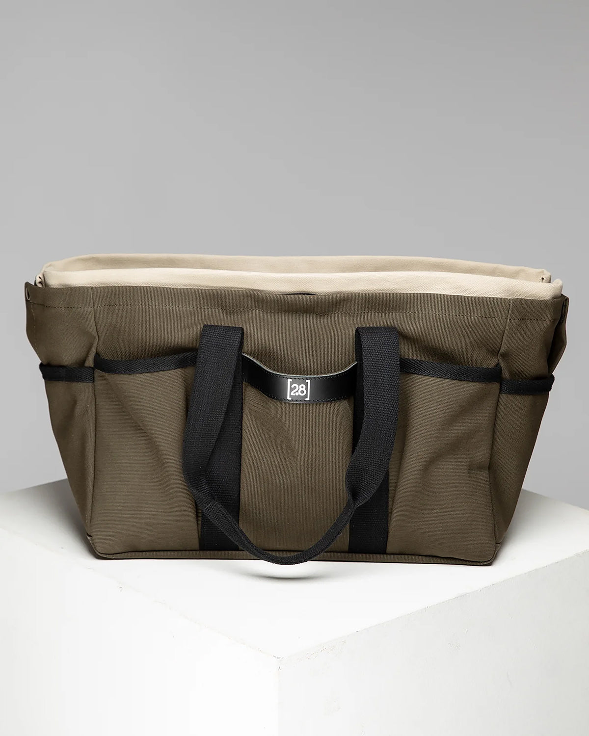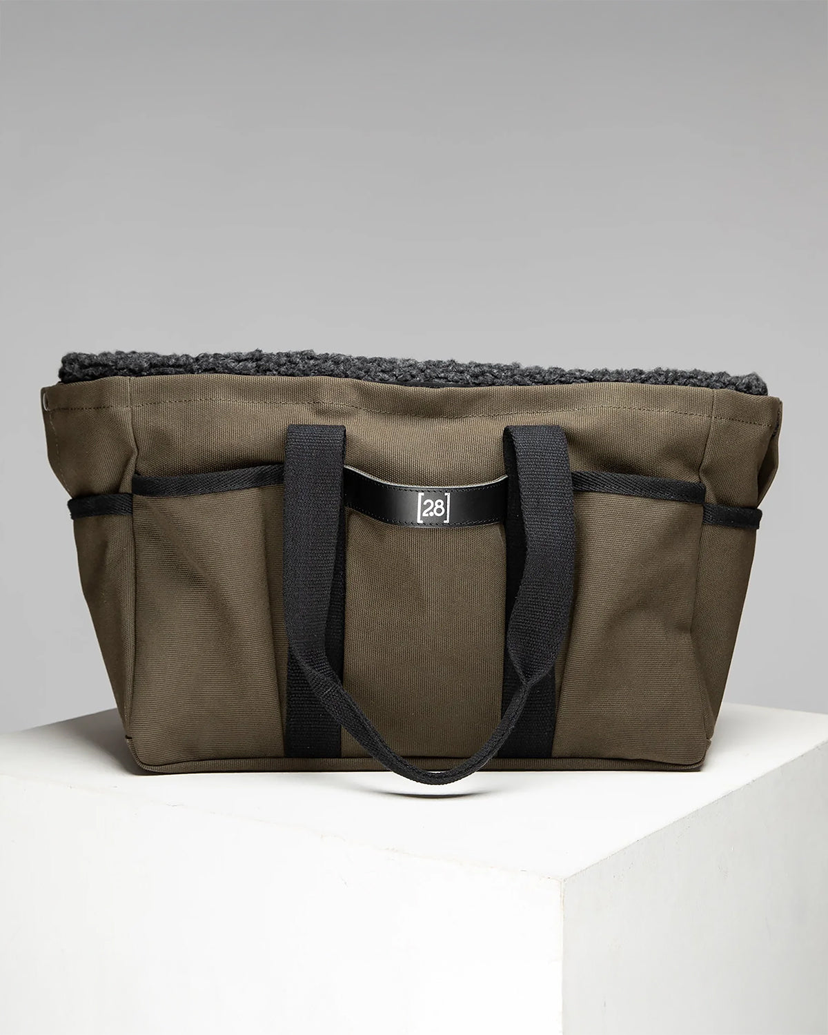 החלק החיצוני עשוי כותנה מטופלת עבה במיוחד (Treated Stain Resistance) בעלת עמידות לכתמים. התיק עתיר כיסים ותאים נסתרים, ושואב השראה מתיקי גננים פונקציונליים ועמידים. הוא רב־שימושי – מתאים לנשיאת כלב עד 8 ק"ג, וגם כתיק עבודה או פנאי.