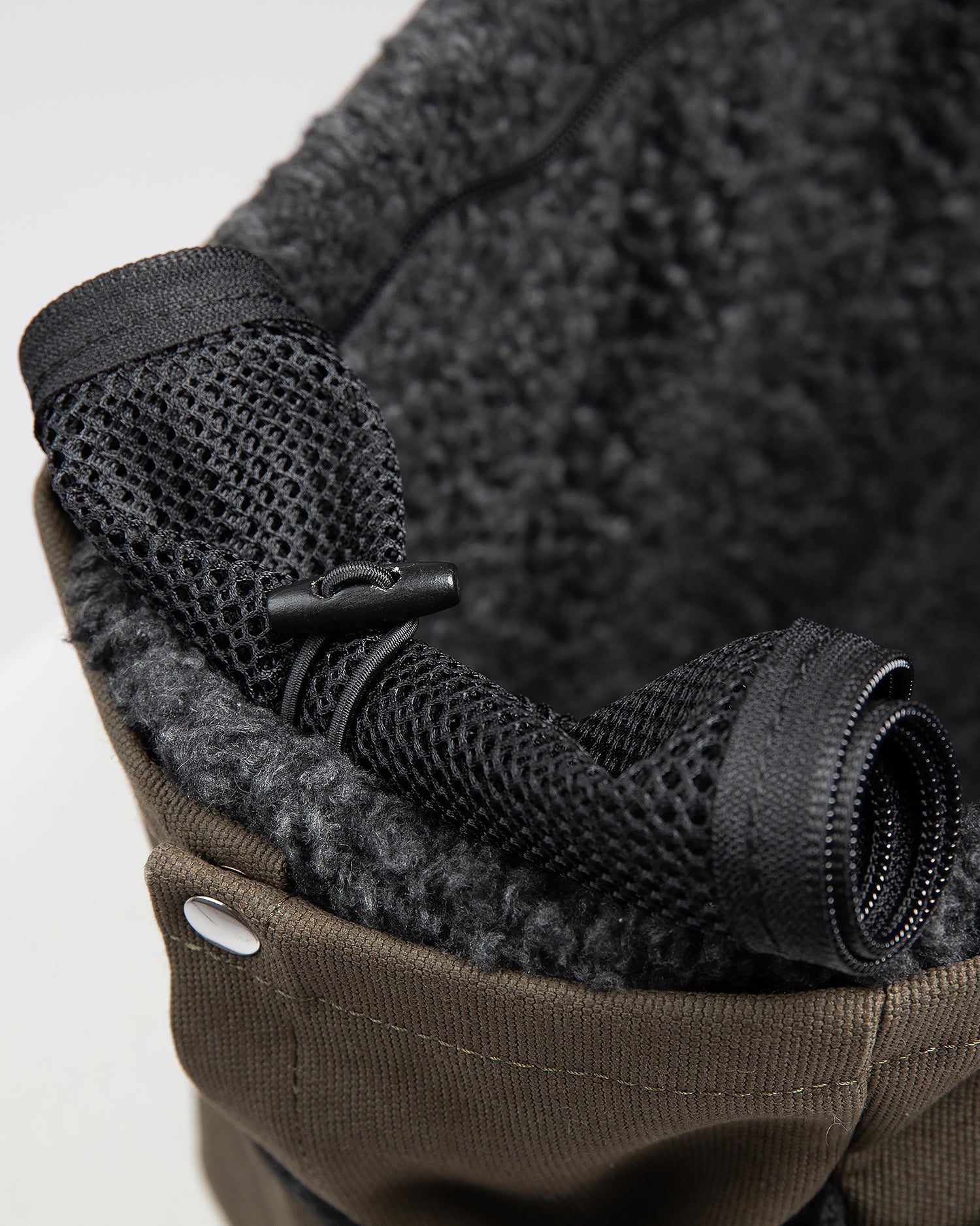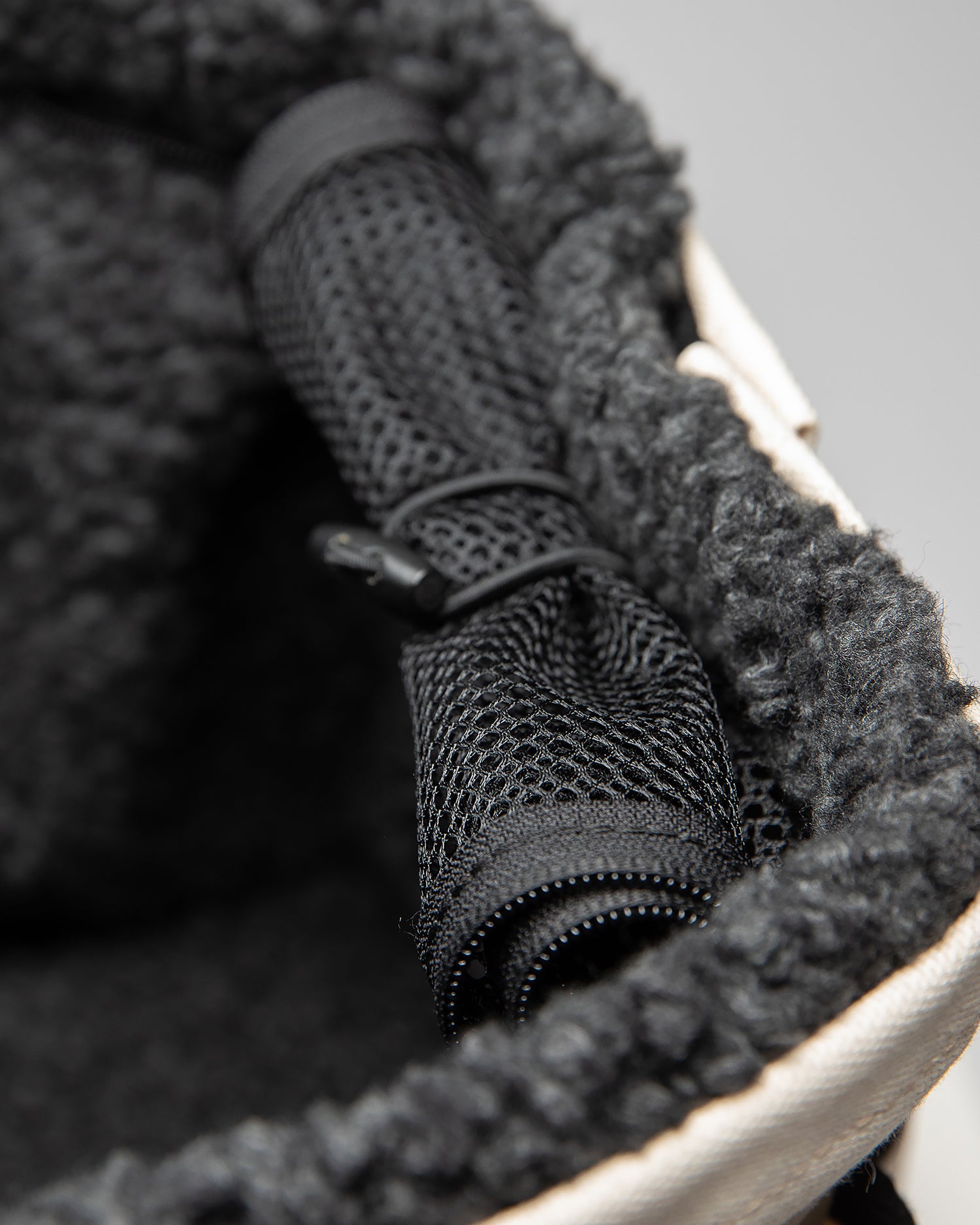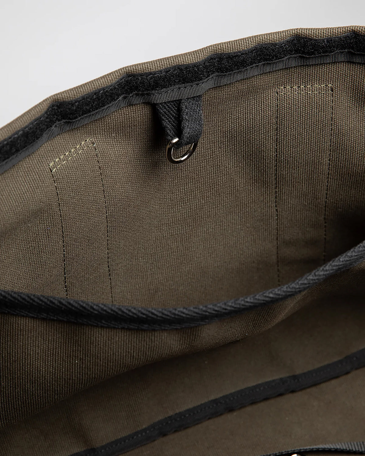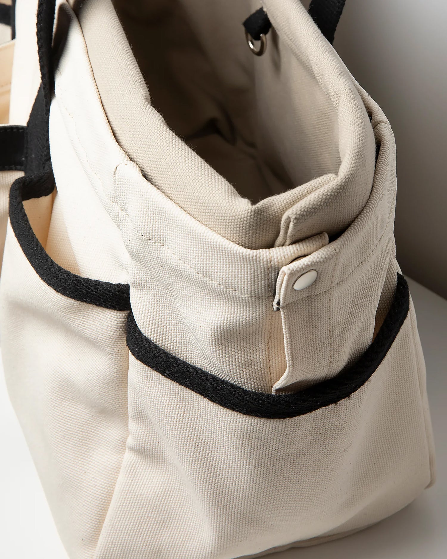 החלק החיצוני עשוי כותנה מטופלת עבה במיוחד (Treated Stain Resistance) בעלת עמידות לכתמים. התיק עתיר כיסים ותאים נסתרים, ושואב השראה מתיקי גננים פונקציונליים ועמידים. הוא רב־שימושי – מתאים לנשיאת כלב עד 8 ק"ג, וגם כתיק עבודה או פנאי.