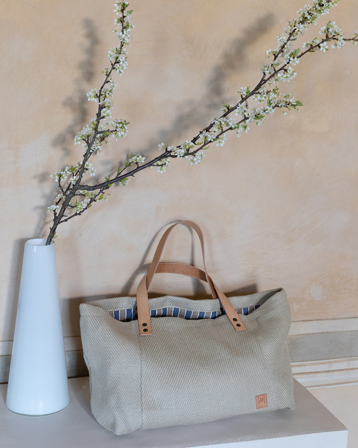 רצועות הכתף עשויות מעור איטלקי רך ואיכותי והבטנה בדוגמת פסים מוסיפות אלגנטיות וצבעוניות.