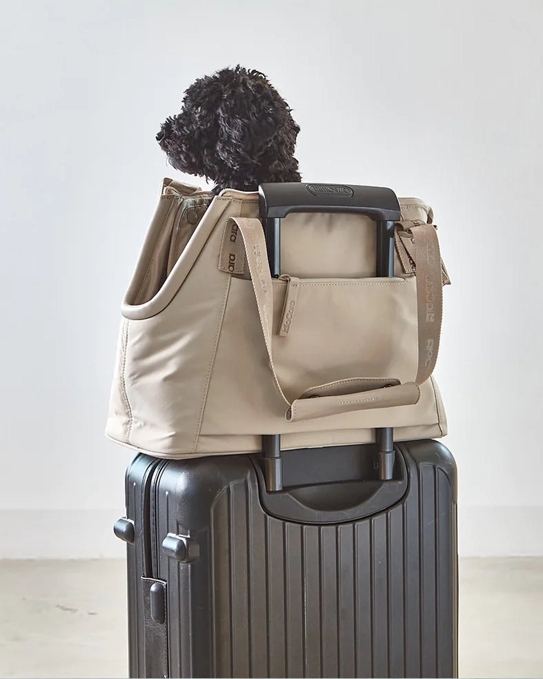 • ניתן להשחיל את התיק בקלות על הידית הטלסקופית של מזוודה. כך תוכלו להתנייד בקלות, מבלי לסחוב את הכלב על הכתף, וכן להעניק לכלב תחושת יציבות נוספת.