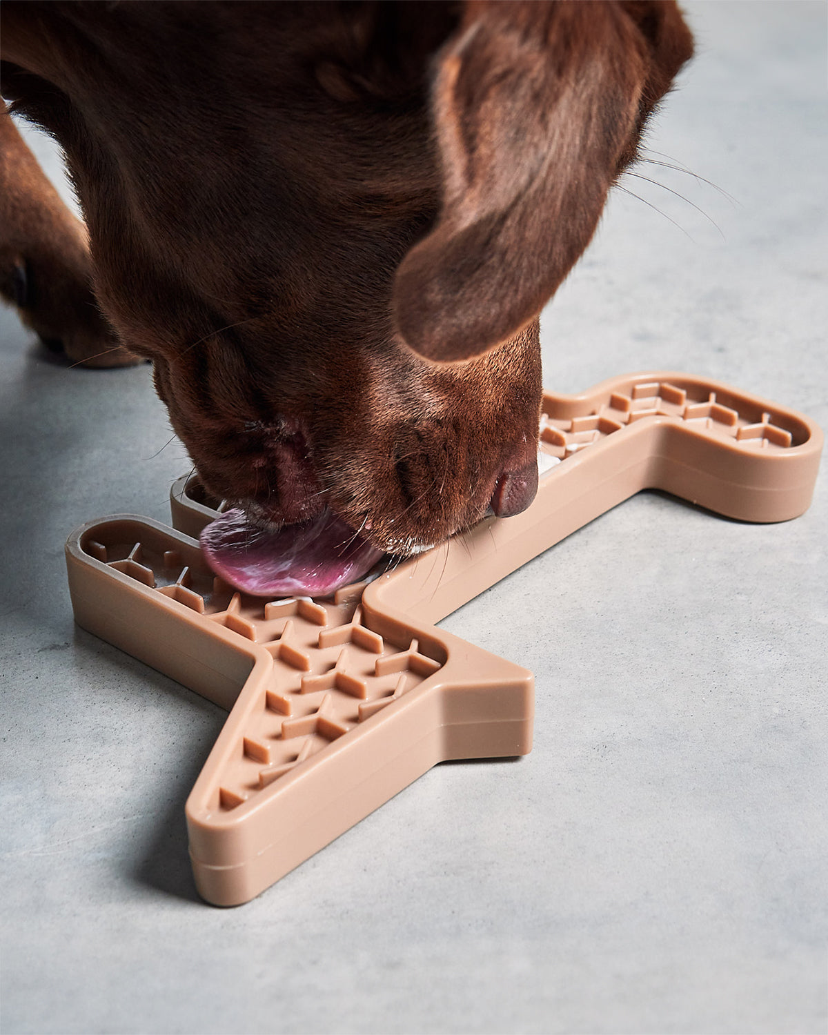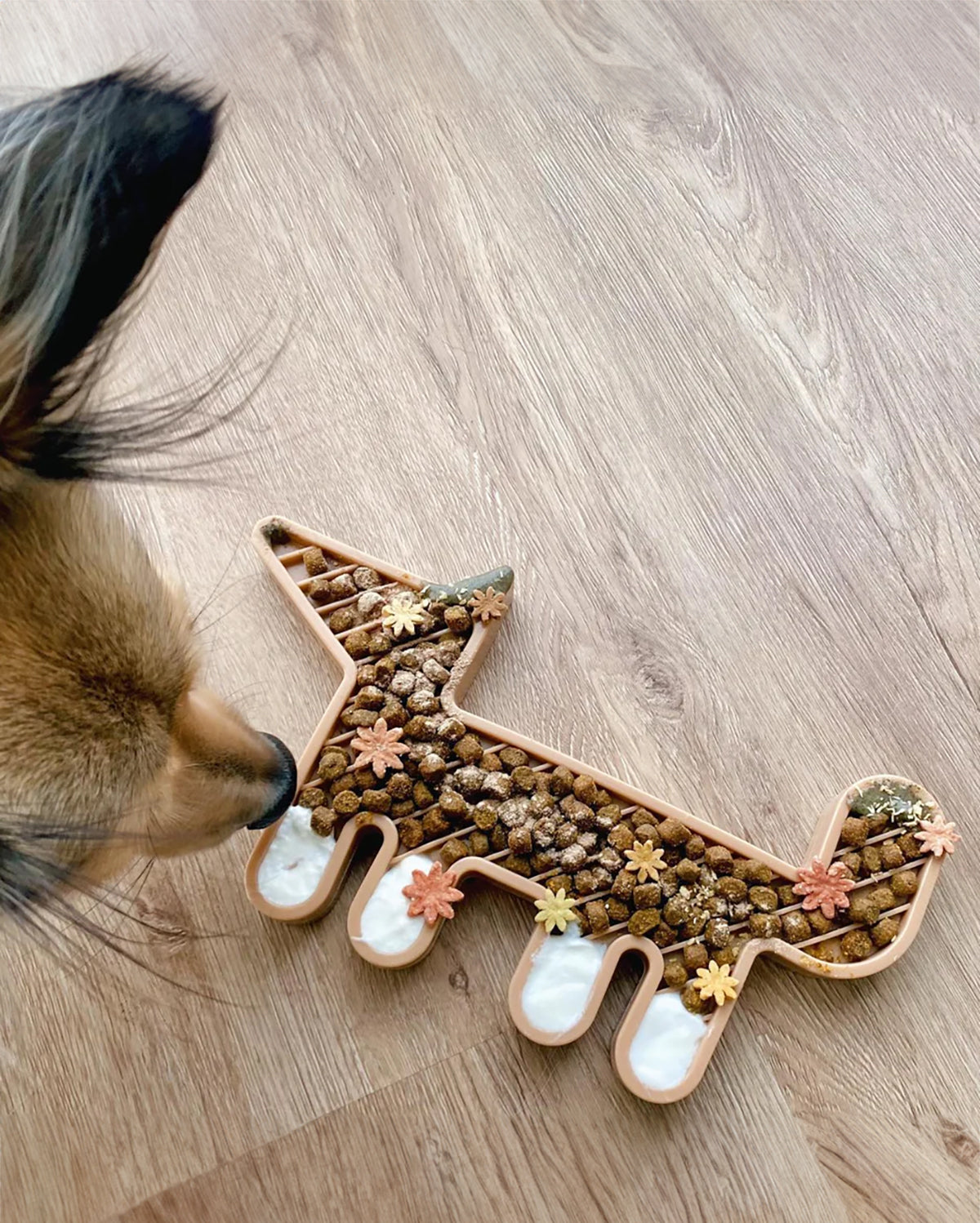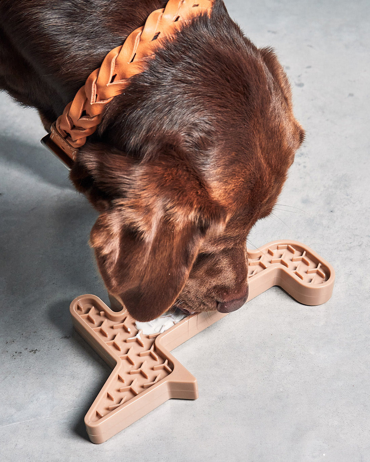 הפתרון המושלם להפגת השעמום של הכלב עם משטח הליקוק Volpe שעוצב על ידי סטודיו העיצוב הדני Hans Thyge & Co, בעל צורת השועל המינימליסטית והמאתגרת עם פינות קימורים.