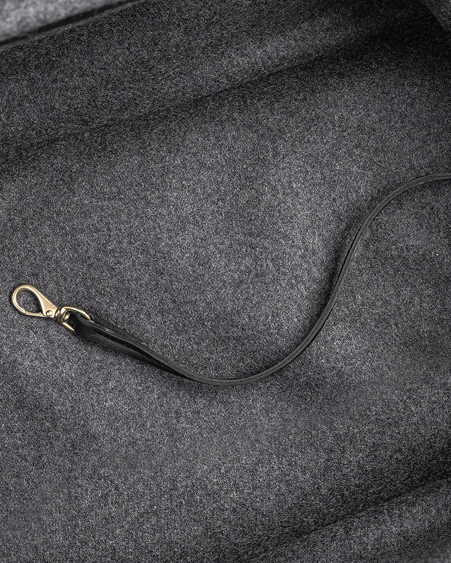 בתוך התיק נמצא משטח פנימי מרופד הניתן לשליפה, העשוי מתערובת עשירה בצמר. הצמר מעניק תחושה רכה ונעימה, מווסת טמפרטורה באופן טבעי ומסייע בהפחתת ריחות בזכות תכונות הניקוי העצמי שלו. המשטח יכול לשמש גם כמשטח מנוחה נייד – למשל במסעדה, אצל חברים או בזמן נסיעה – כך שהכלב תמיד יוכל לנוח על משטח מוכר ונעים.