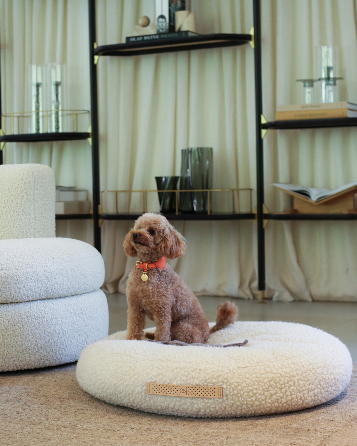 מיטת פוף לכלבים Fulvio מצמר בוקלה איטלקי, מבית המותג 2.8 Design For Dogs האיטלקי.