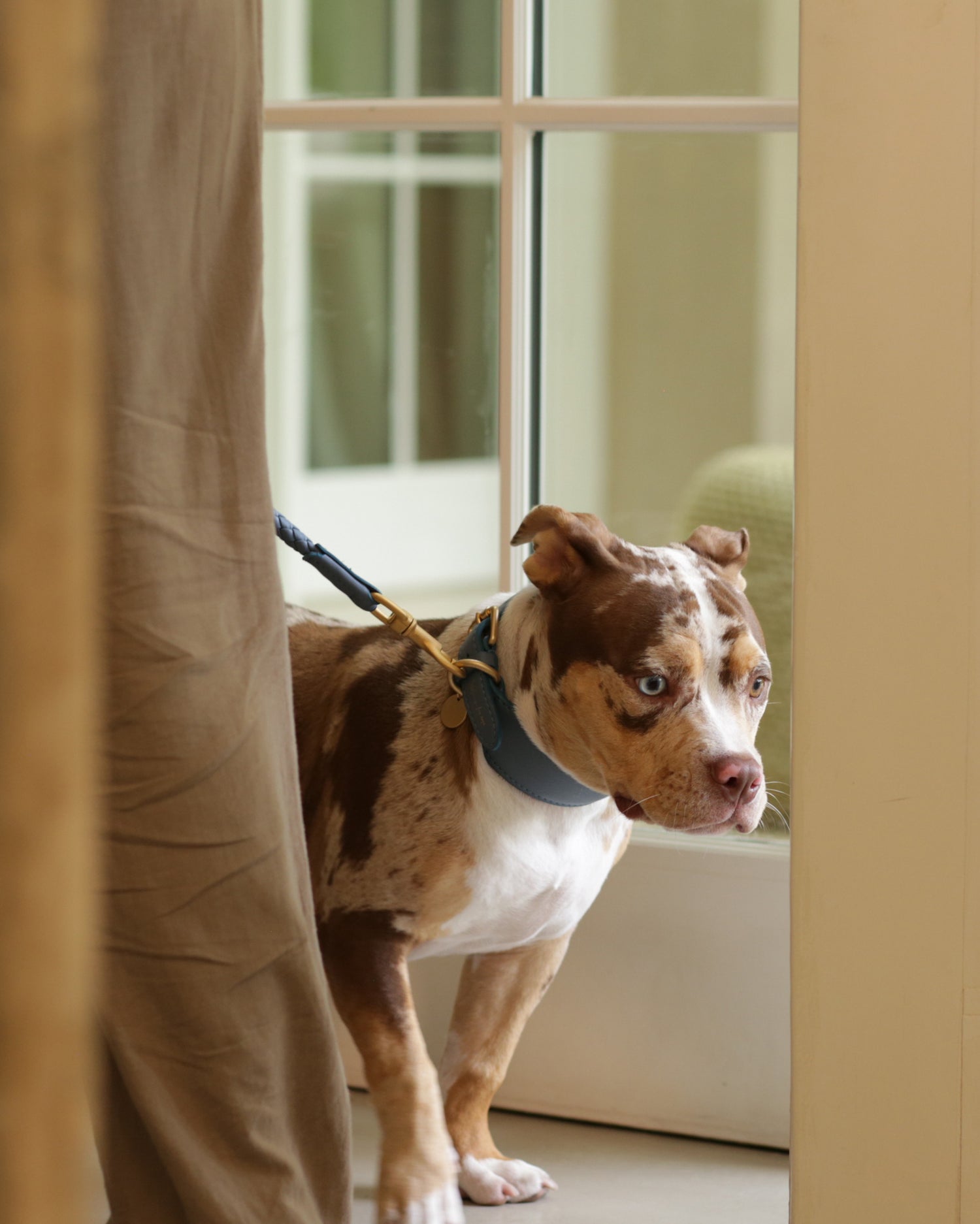 חברו את הקולר לרצועת Ferdinando Braided Leash מהעור הקלוע או לרצועת Mario Adjustable Leash מהעור החלק הארוכה והמתכווננת התואמת בעיצובים תואמים לקולר.
