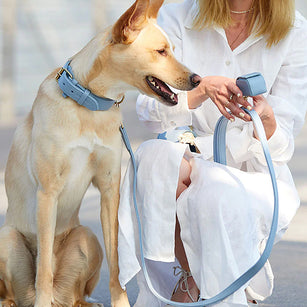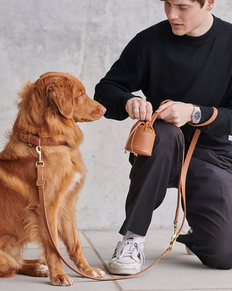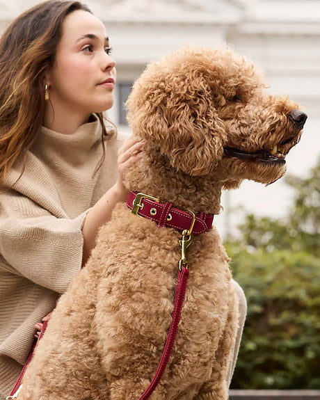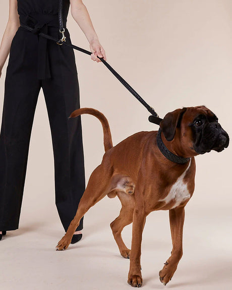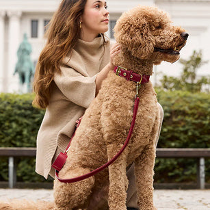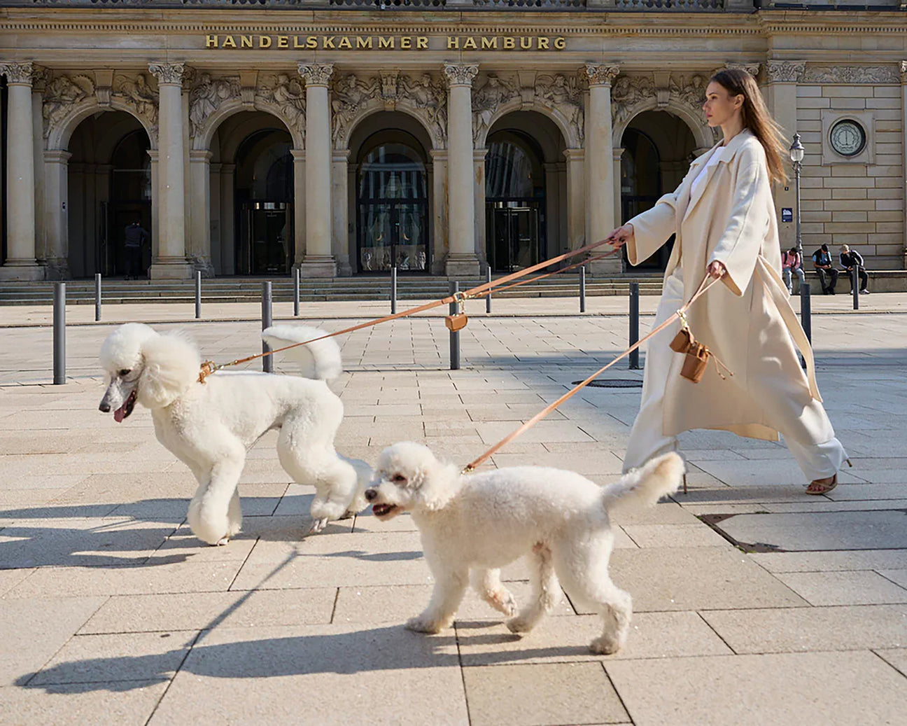 בקולקציה: קולרים, רצועות ואביזרי הליכה מעור נאפה, זמש וקאוהייד, לצד קערות קרמיקה ומעמדי עץ – כולם משלבים יוקרה, דיוק ואהבה אמיתית לכלבים.