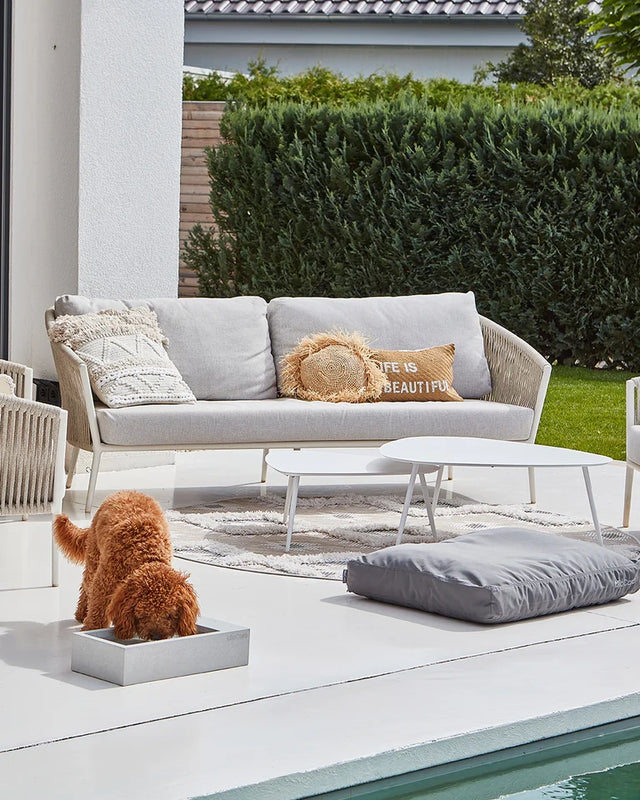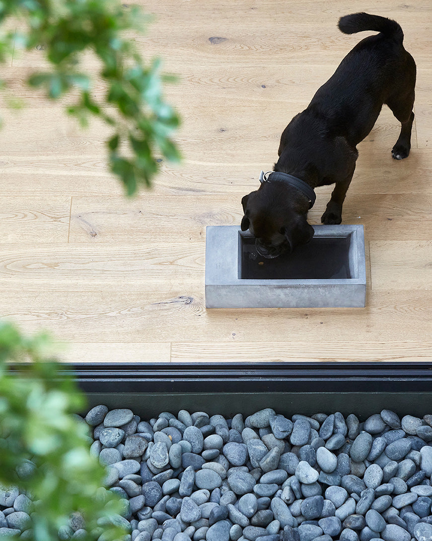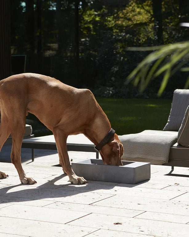 קערת הכלב והחתול Trogolo עשויה מבטון עמיד בפני מזג אוויר, אשר תוכננה לשימוש חיצוני.