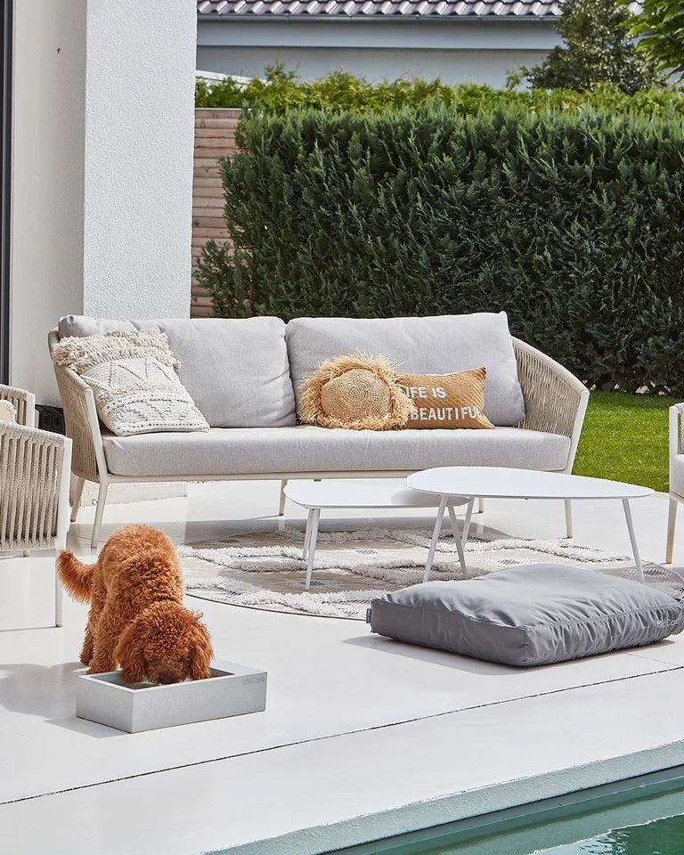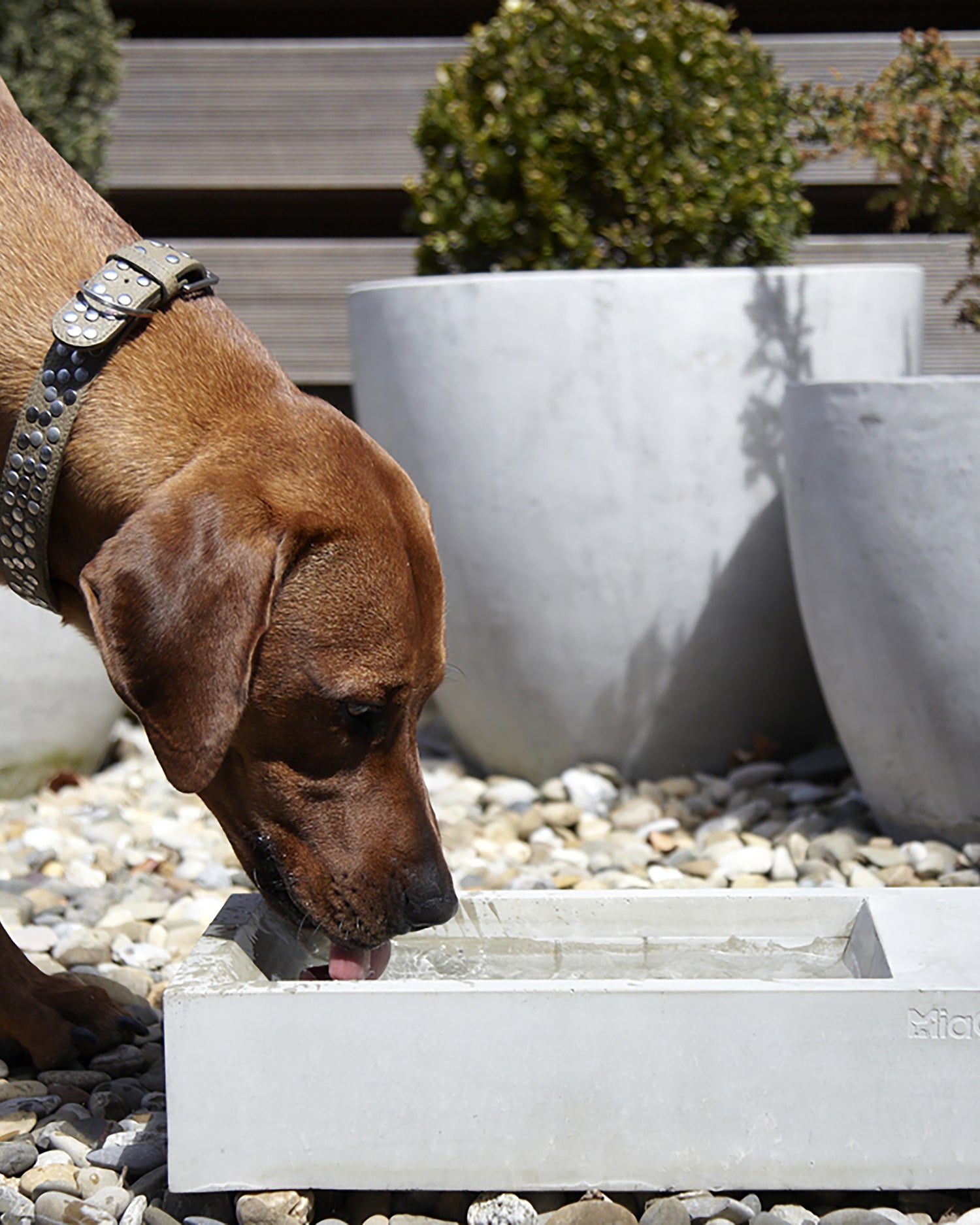 קערת מים לכלבים ולחתולים לחצר מבטון יצוק Trogolo מבית המותג MiaCara הגרמני.