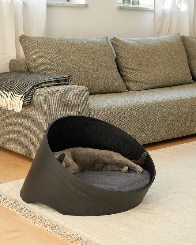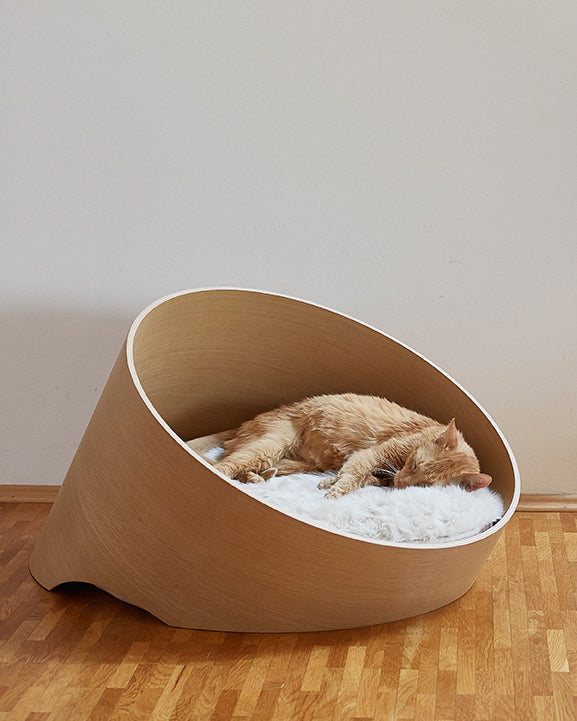 מיטה מעוצבת לחתולים Covo Cave Wood Bed מבית המותג MiaCara הגרמני.