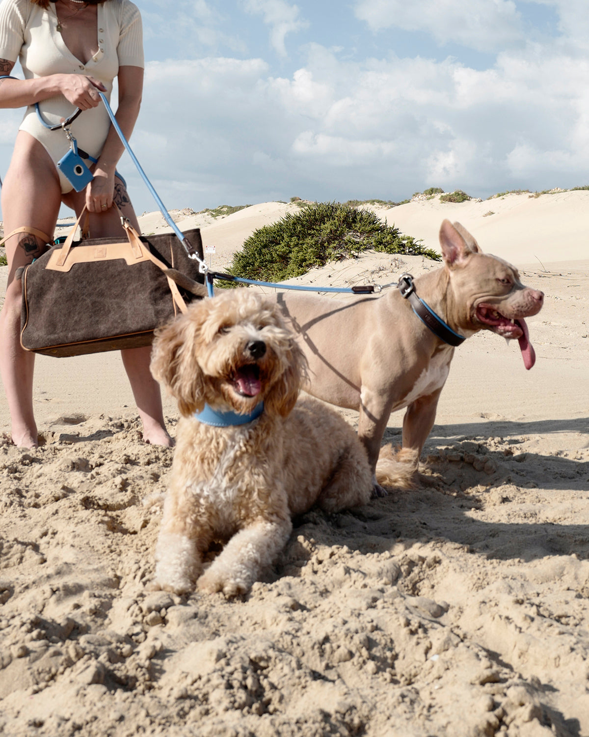 כל הרצועות של Dogs & Horses מגיעות עם טבעת מתכת שמיועדת לתליית נרתיק שקיות. נרתיקי השקיות לאיסוף צרכים לכלבים PooSh Bag מגיעים בצבעים תואמים ליצירת סטים מושלמים.