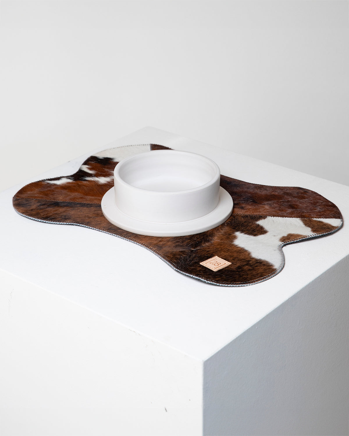 פלייסמט לקערות לכלבים וחתולים העשוי מ-עור פרה (cowhide) מציע מספר יתרונות ייחודיים, הן מבחינת פונקציונליות והן מבחינת עיצוב: