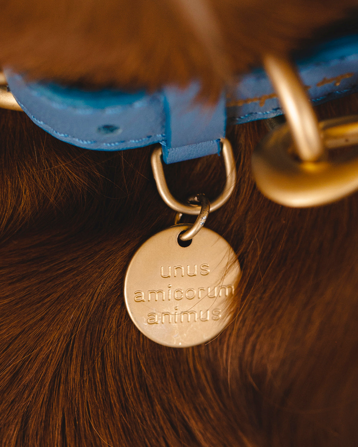 על הכלר תלוי תליון עגול שעליו חרוט המשפט הלטיני "Unun Amicorum Animus" (אריסטו) - "לחברים יש רק נשמה אחת" - משפט המבטא את החברות העמוקה בין הכלב לבעליו.