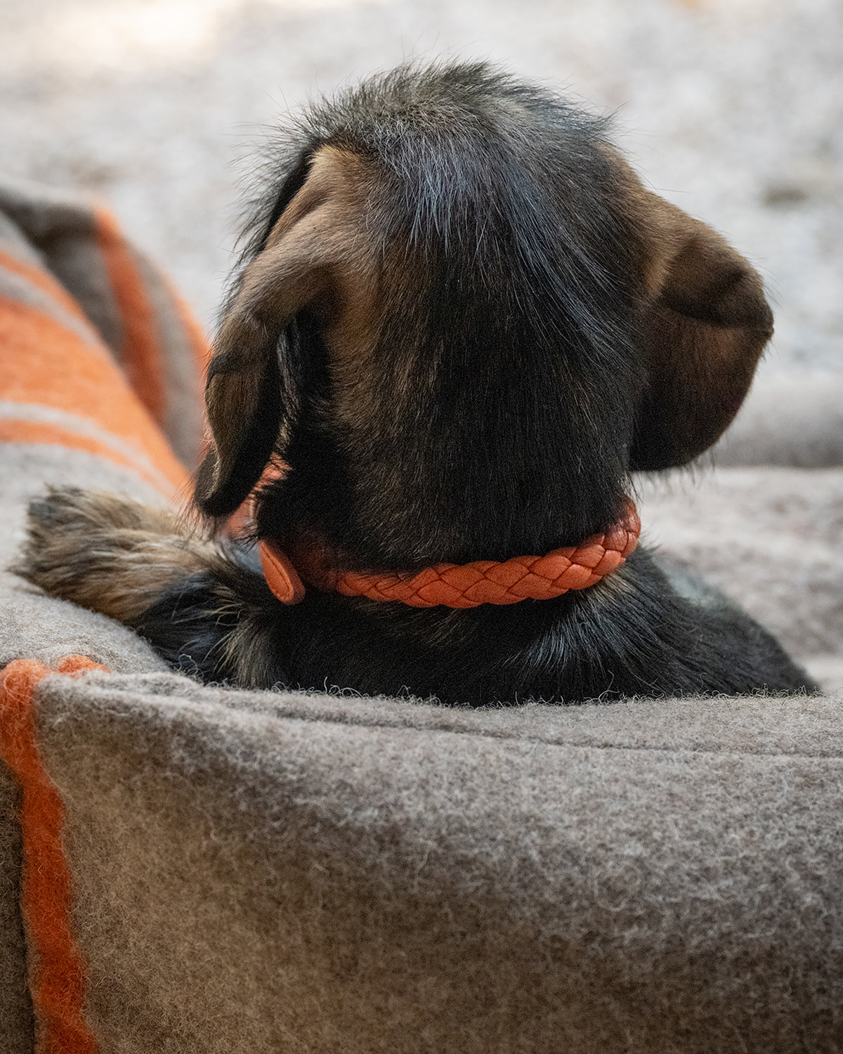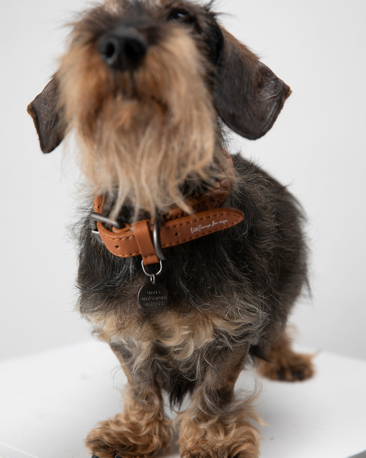 הקולר עשוי מעור נאפה קלוע, כמו שאר מוצרי המותג, גם העור של קולר פרדינדו מגיע מלב טוסקנה, המחוז האיטלקי שבו יוצרים מוצרי העור האיכותיים והמובחרים ביותר בעולם.