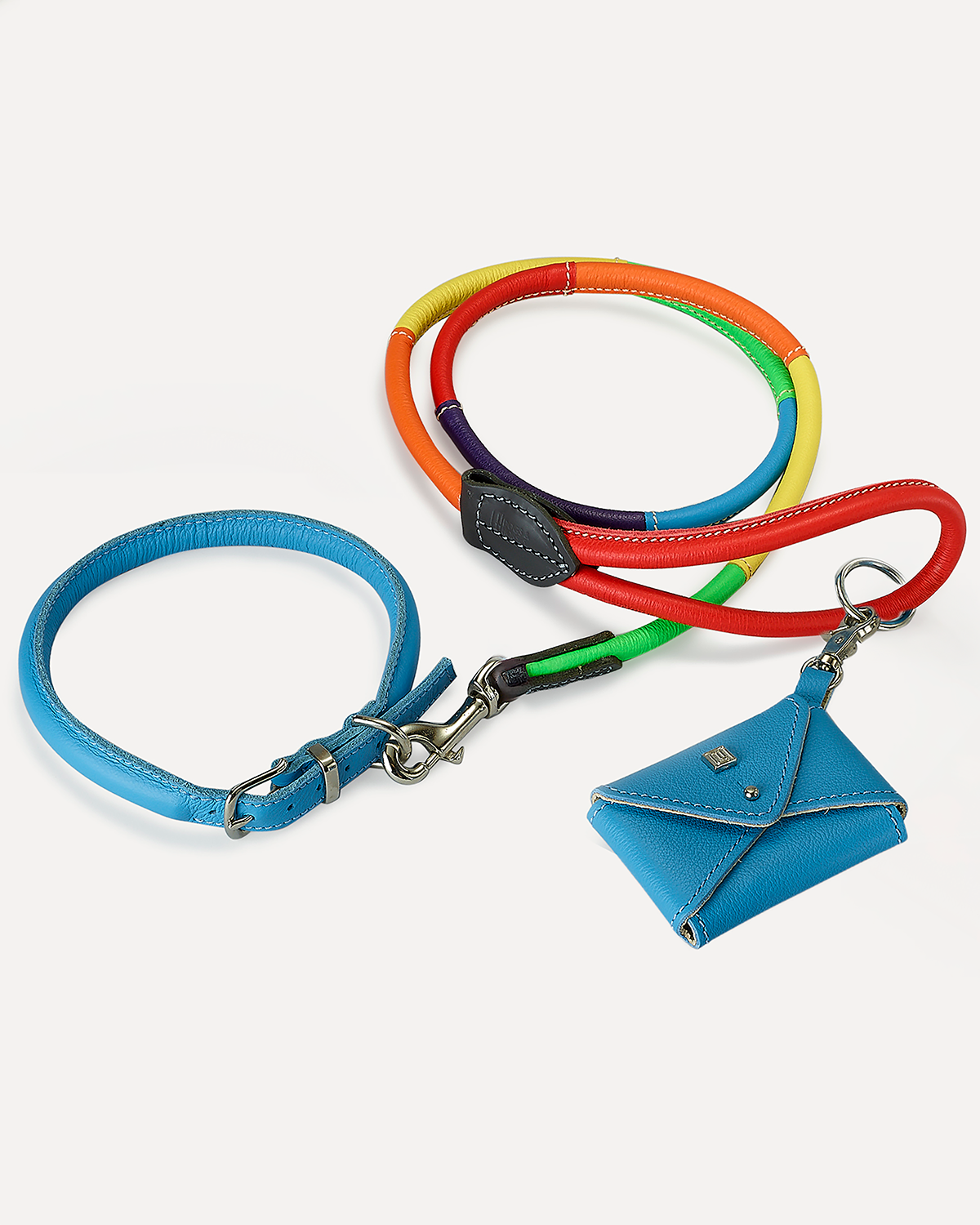 רצועת עור לכלבים Rolled Soft Leather Dog Lead הרכה ומעוגלת מקולקציית ה- Pride Collection בצבעי דגל הגאווה של המותג Dogs & Horses הלונדוני עטור הפרסים, הינה רצועת הדגל שלהם יש מראה אייקוני אופייני למותג. נוחה ונעימה במיוחד לאחיזה ולשימוש.