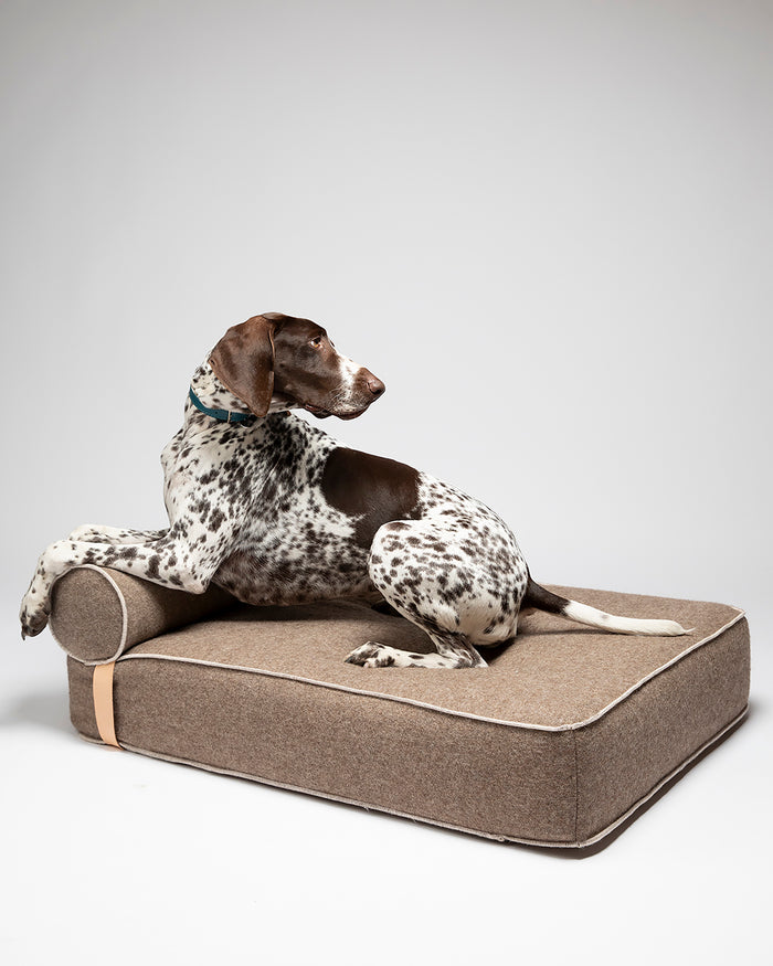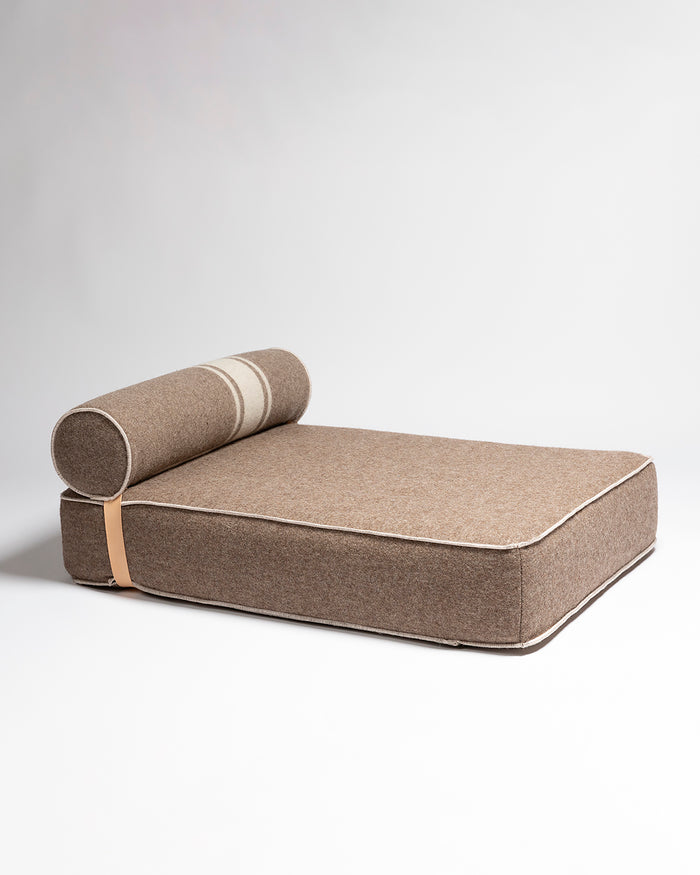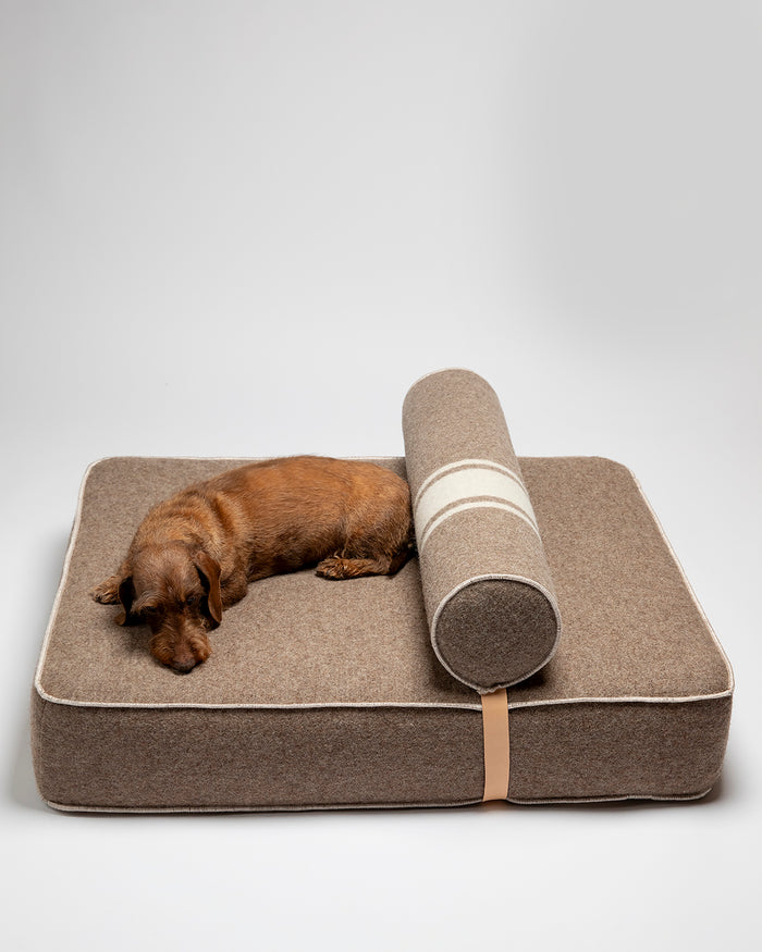 המיטה מרופדת בצמר ממוחזר , בד שהוא מפגש בין מורשת איטלקית וקיימות, ושזורים בתוכו הרבה אהבה וכבוד לטבע ולמלאכה, עם תפרים מנוגדים מוסיפים טאץ' עיצובי אופנתי - זו לא רק מיטת כלב - זו אמירה עיצובית וערכית שתשתלב בצורה הרמונית בביתכם.