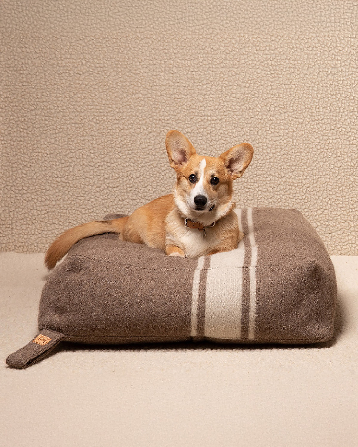 המיטה מרופדת בצמר ממוחזר , בד שהוא מפגש בין מורשת איטלקית וקיימות, ושזורים בתוכו הרבה אהבה וכבוד לטבע ולמלאכה - זו לא רק מיטת כלב - זו אמירה עיצובית וערכית שתשתלב בצורה הרמונית בביתכם.