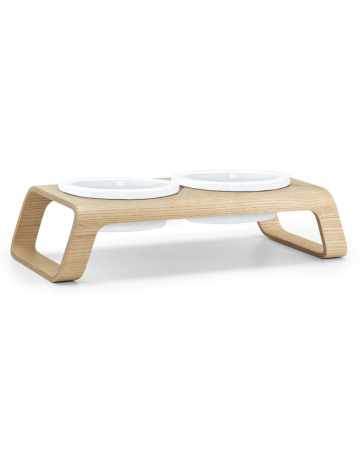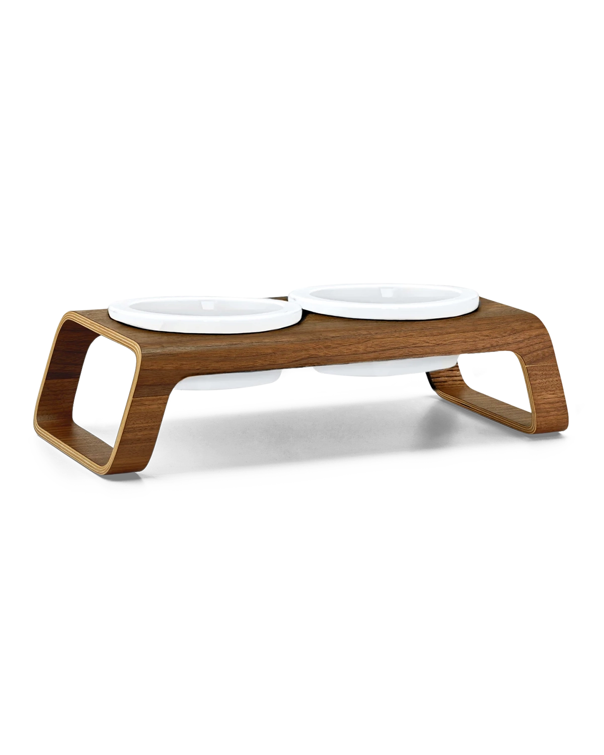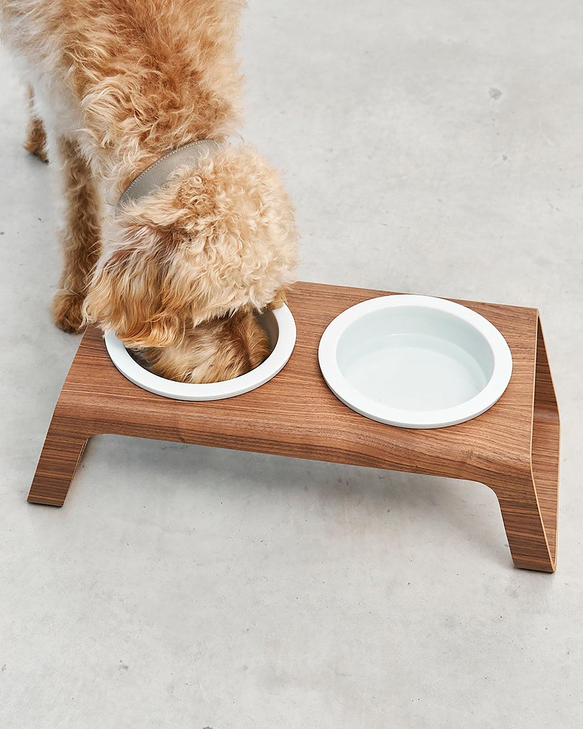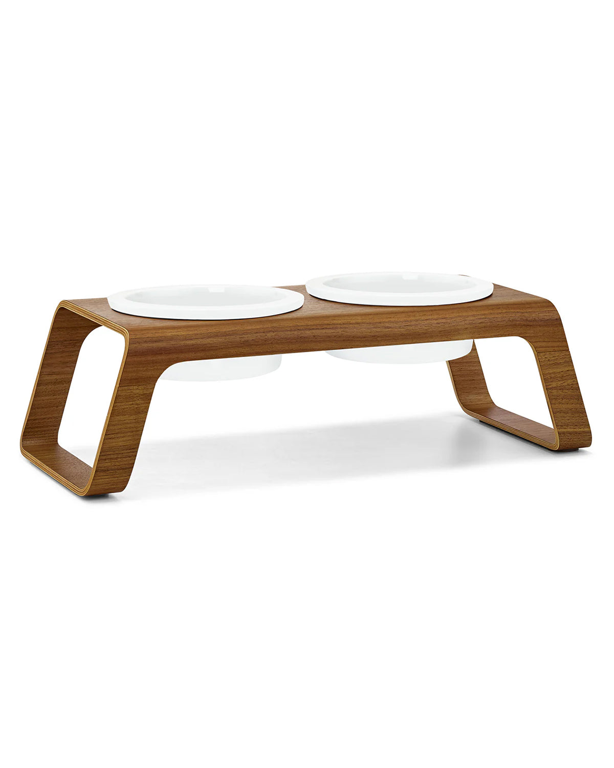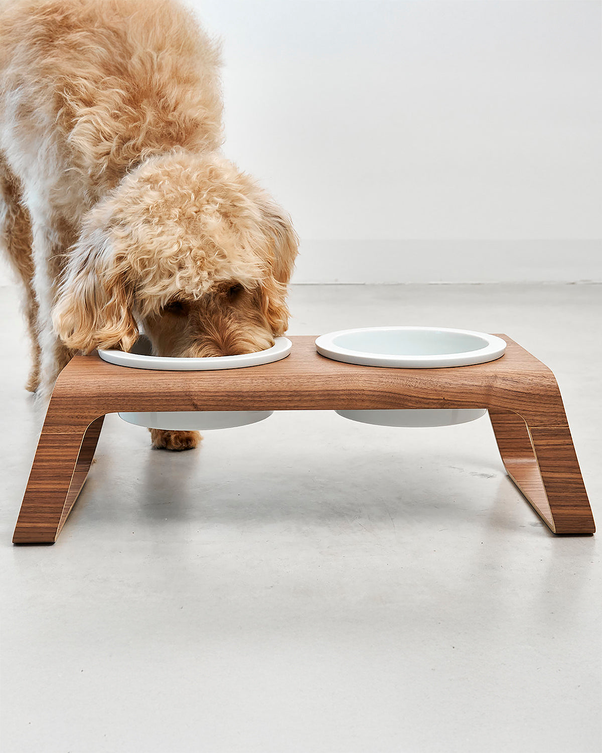 המעמד עשוי בקפידה מעץ אגוזי מלך או מעץ מילה לבחירה, ומשלב זוג קערות פורצלן בעבודת יד מתוצרת גרמניה – כך שהוא מספק בקוד אחד את כל מה שצריך לפינת האוכל של הכלב: קערת מים וקערת אוכל במעמד יחיד.
