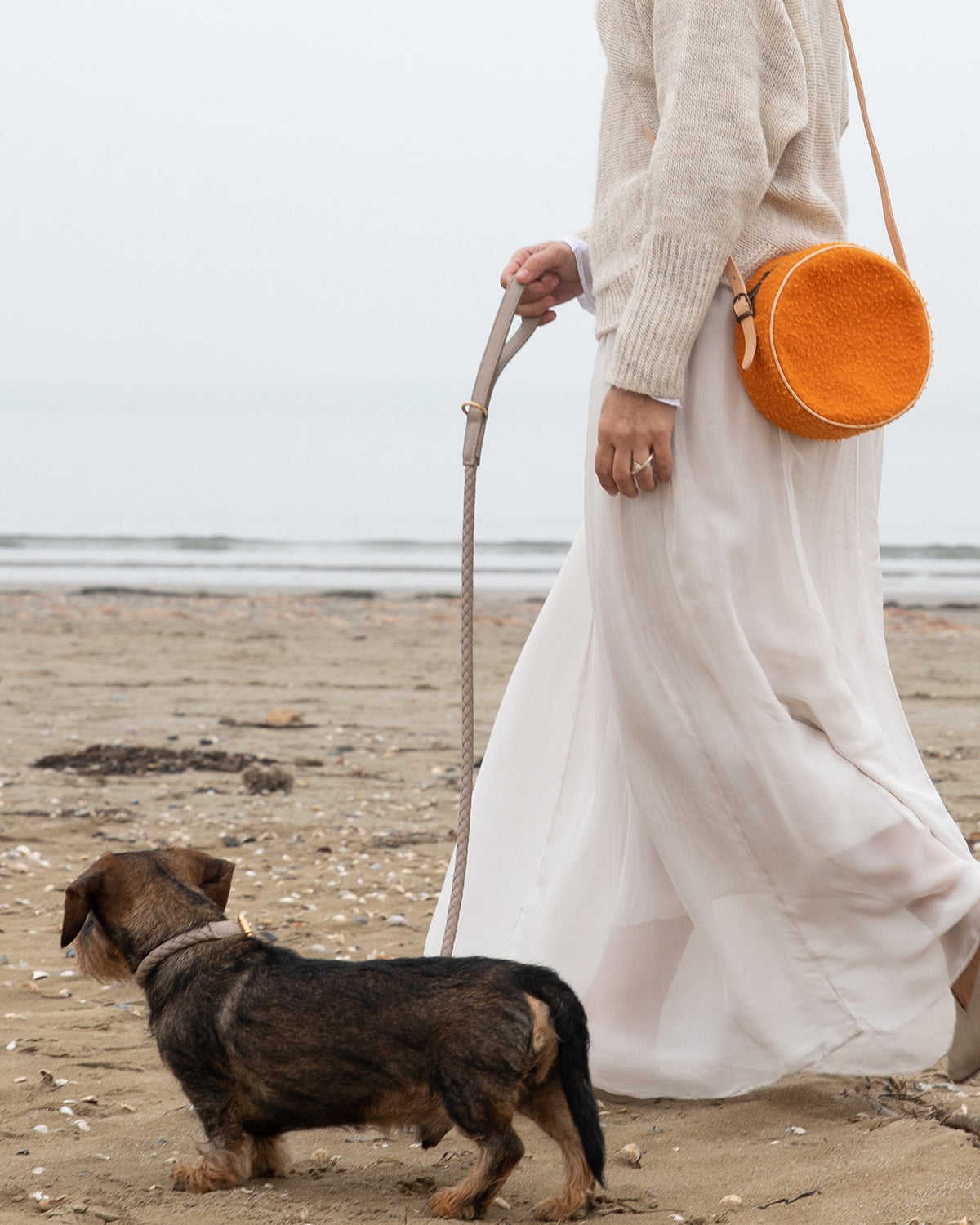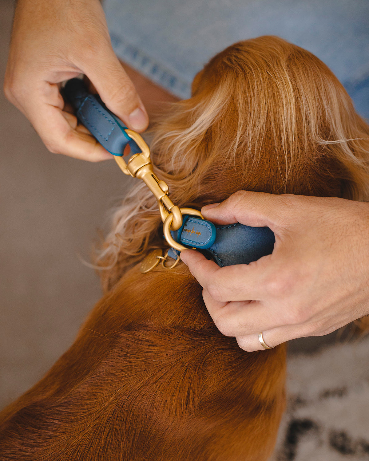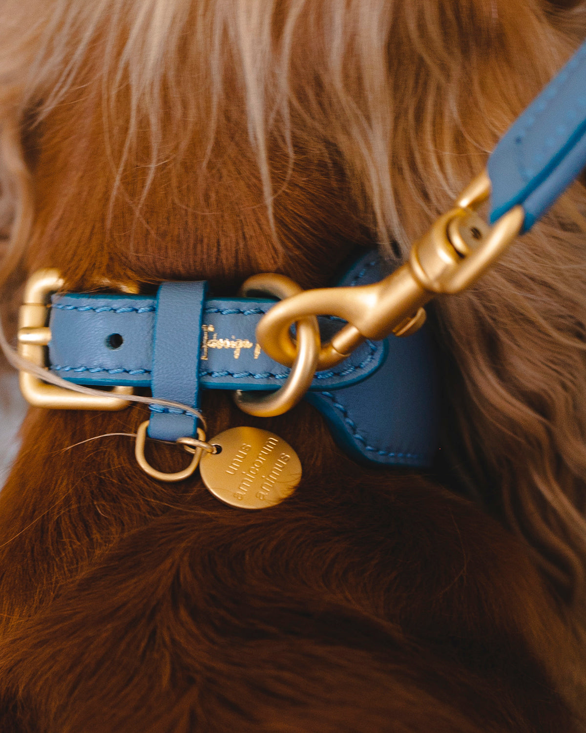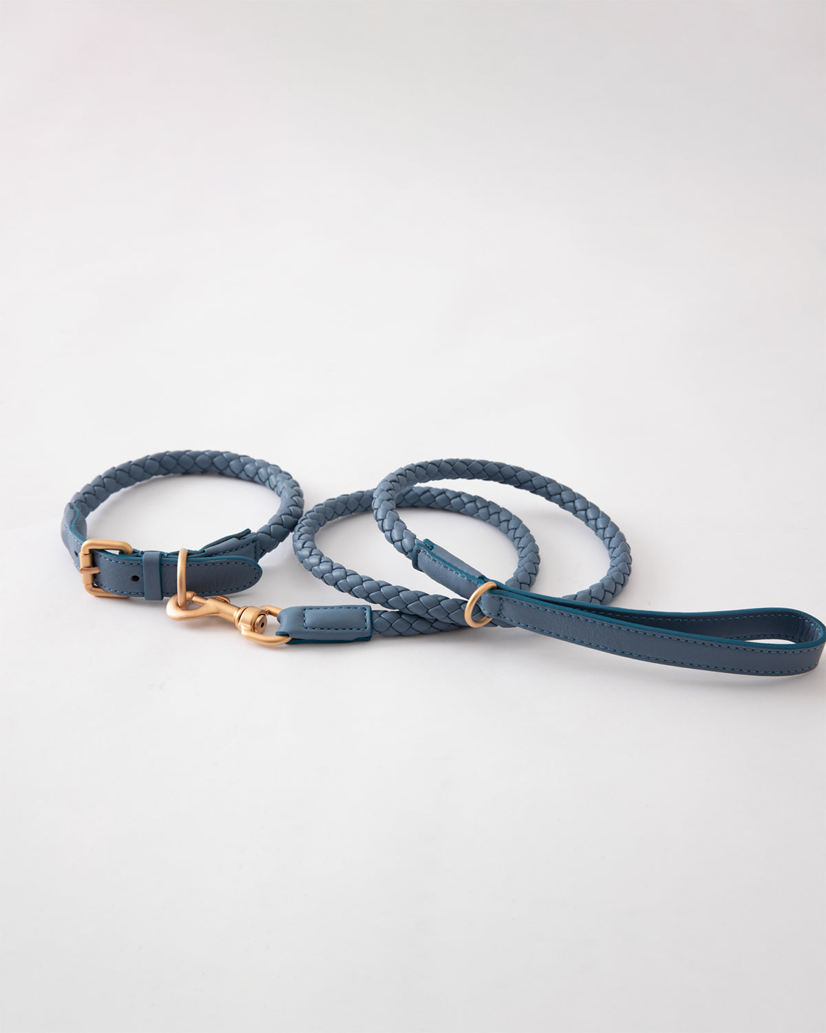 הרצועות עשויות עור נאפה קלוע יוקרתי, שנבחר בקפידה בזכות רכותו ומרקמו. החומר עובר תהליך שיזוף צמחי קפדני לשיפור העמידות, והתוצאה היא רצועה שמרגישה נעימה גם למגע היד וגם על צוואר הכלב.