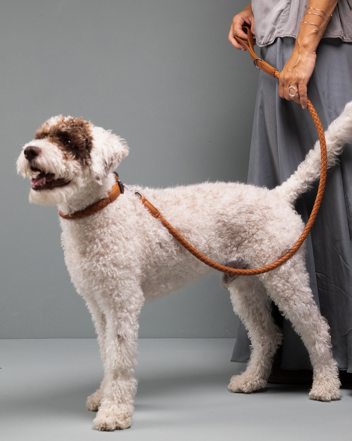 רצועת עור נאפה קלועה לכלבים Ferdinando Nappa Leather Lead מבית המותג 2.8 עיצוב לכלבים האיטלקי.