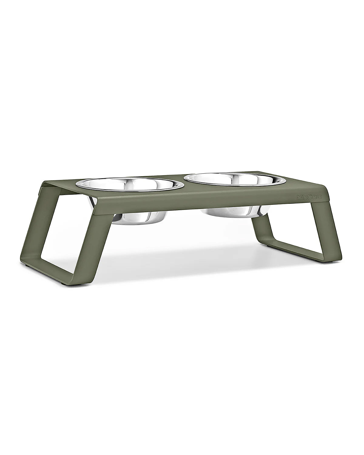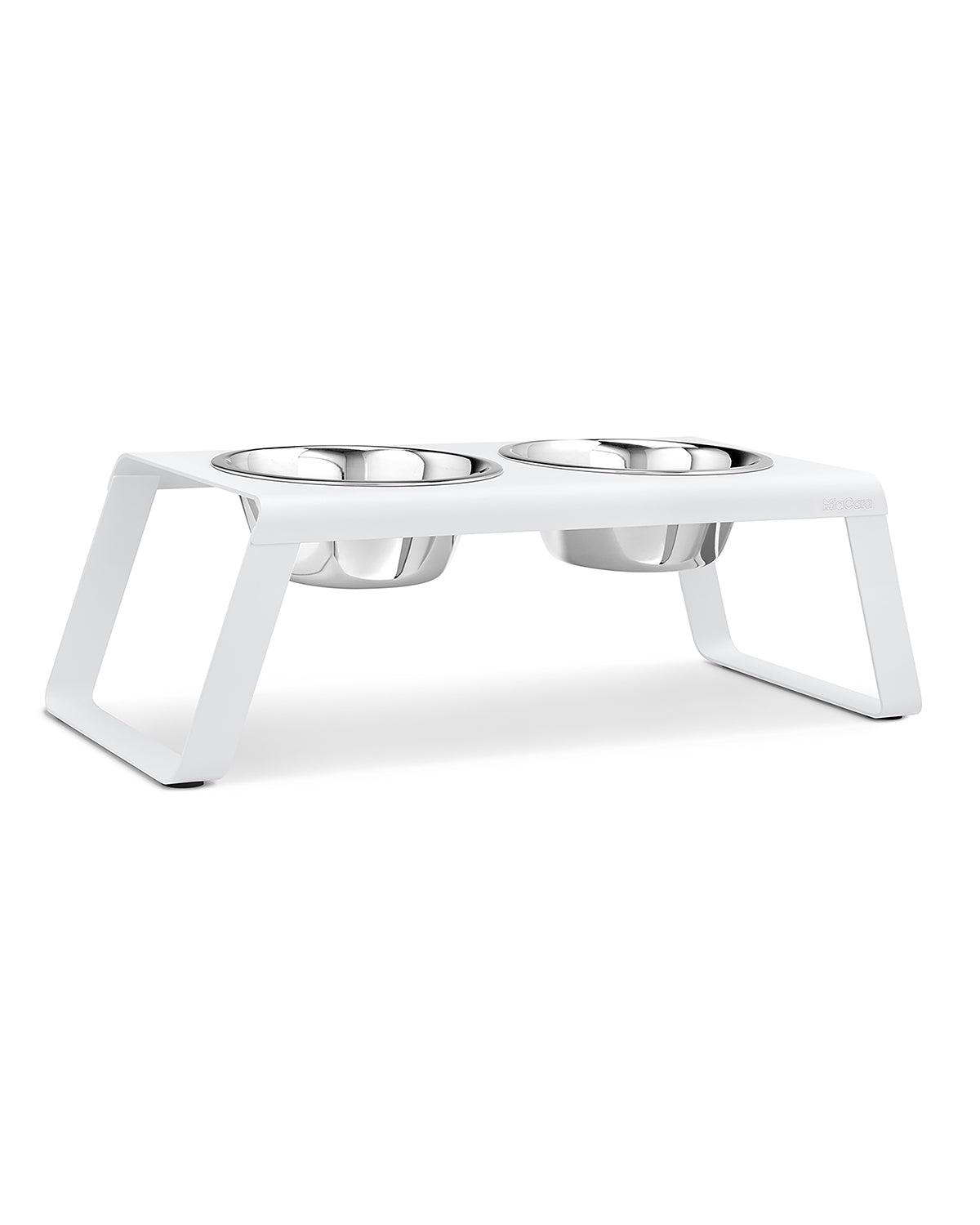 מעמד ה- Desco Aluminium Dog Feeder Station הוא מעמד לקערות אוכל ומים לכלבים לאכילה מוגבהת, עשוי בקפידה מאלומיניום, בעיצוב נורדי, מתאים לשימוש פנימי וחיצוני, ומגיע עם זוג קערות נירוסטה מוברשות.