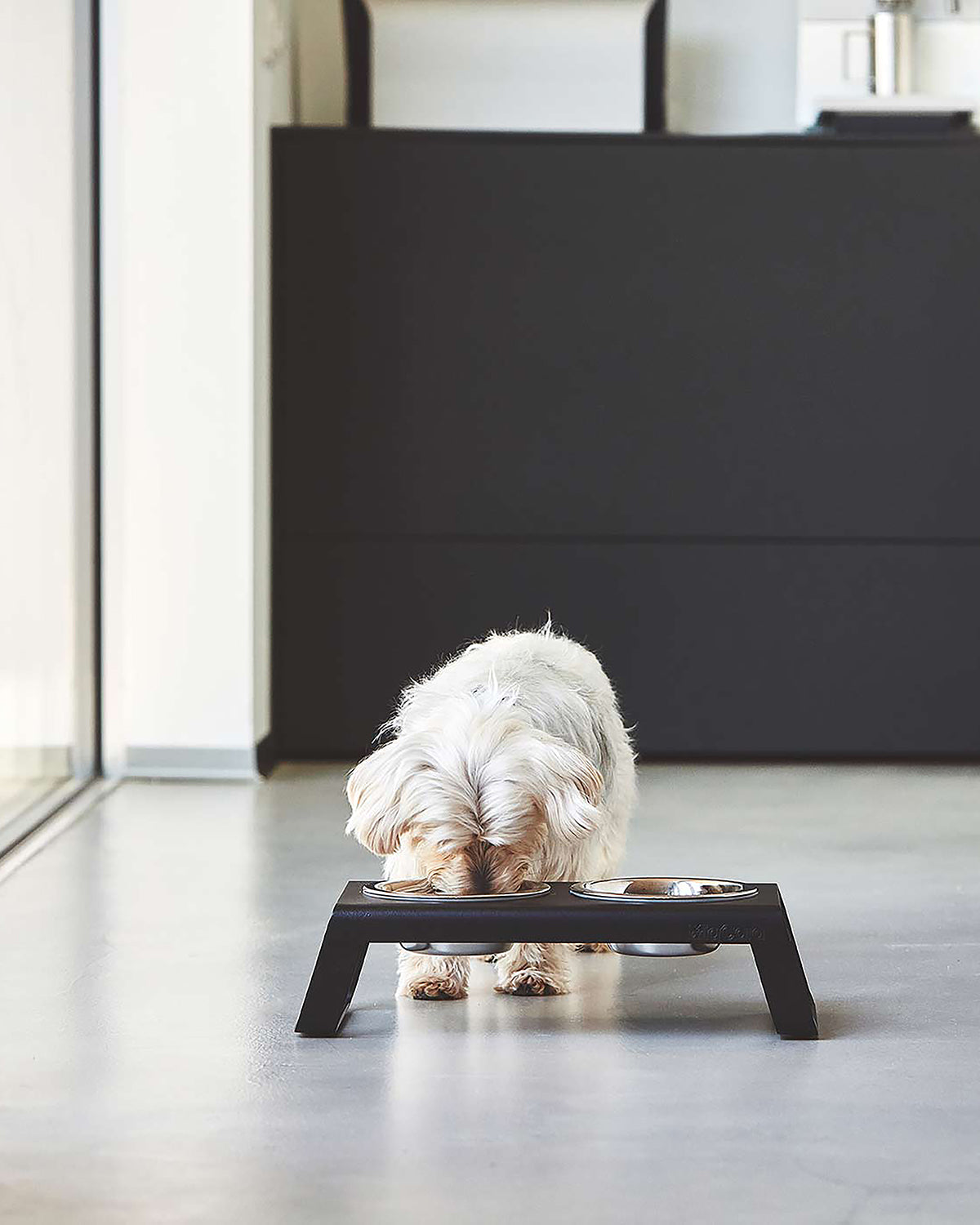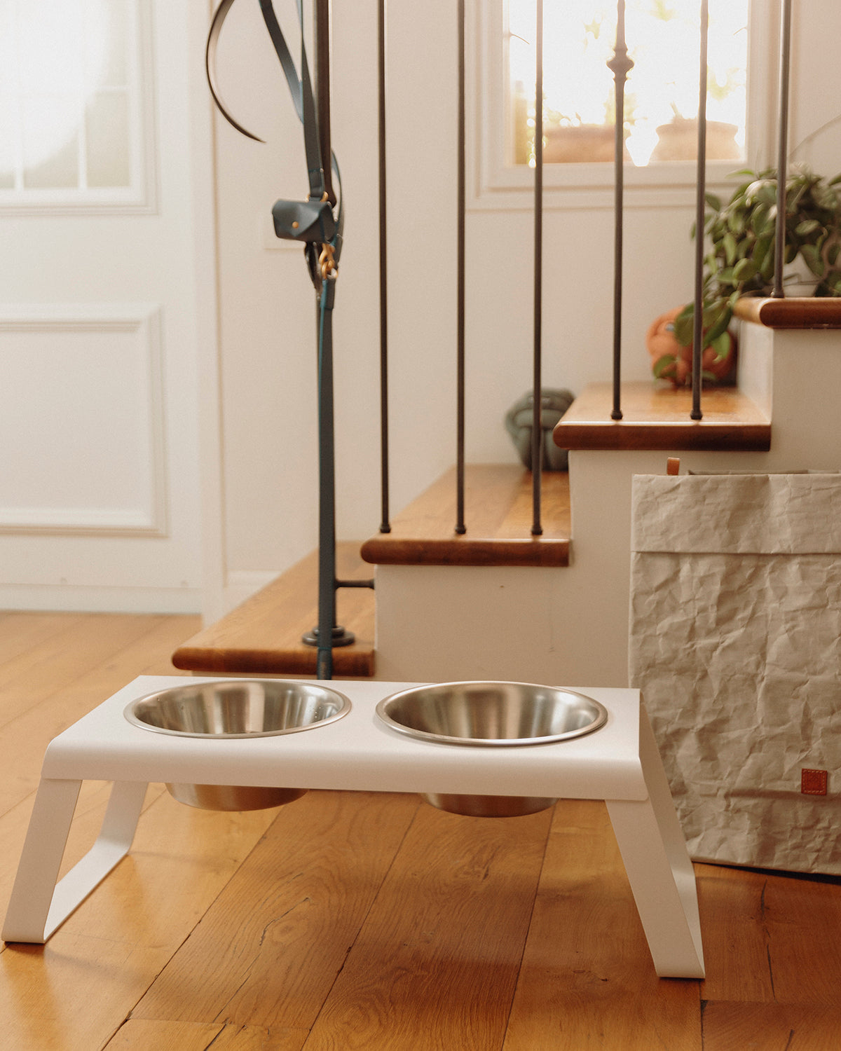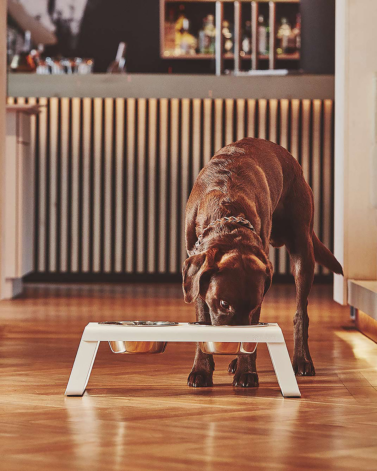 "Modest lines and a minimalist approach combined with contemporary materials outwardly result in a sturdy, firm dog feeder with Scandinavian feel."