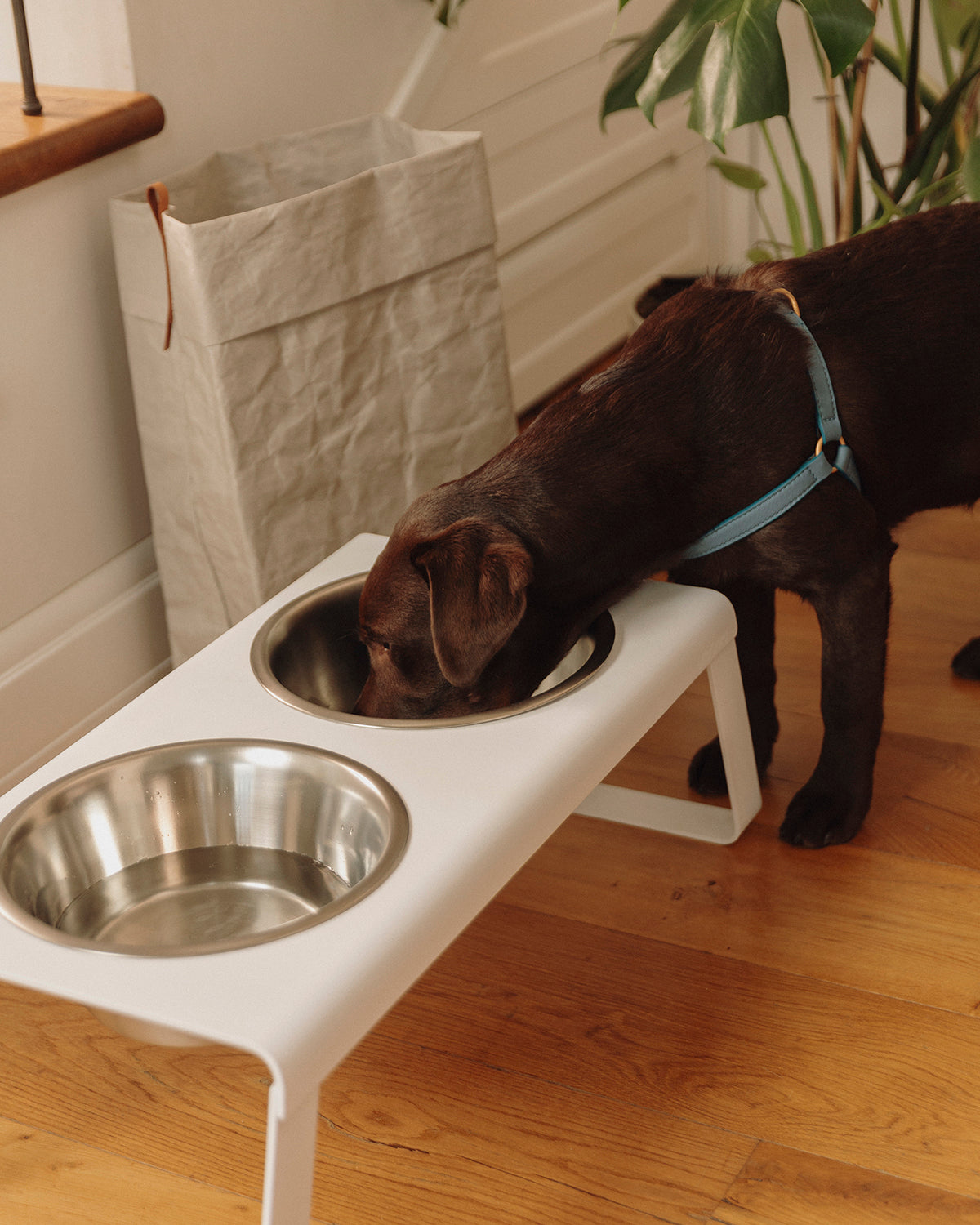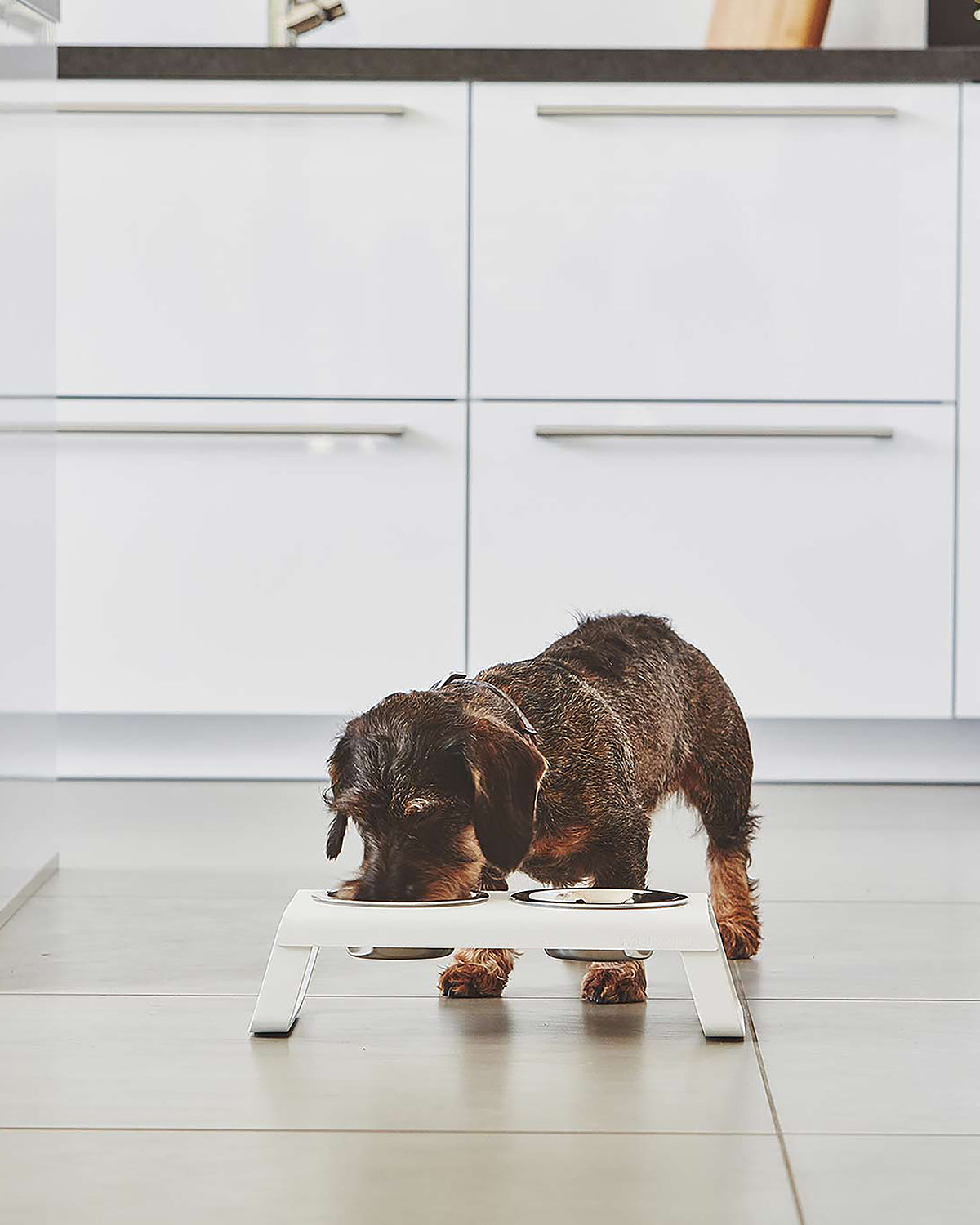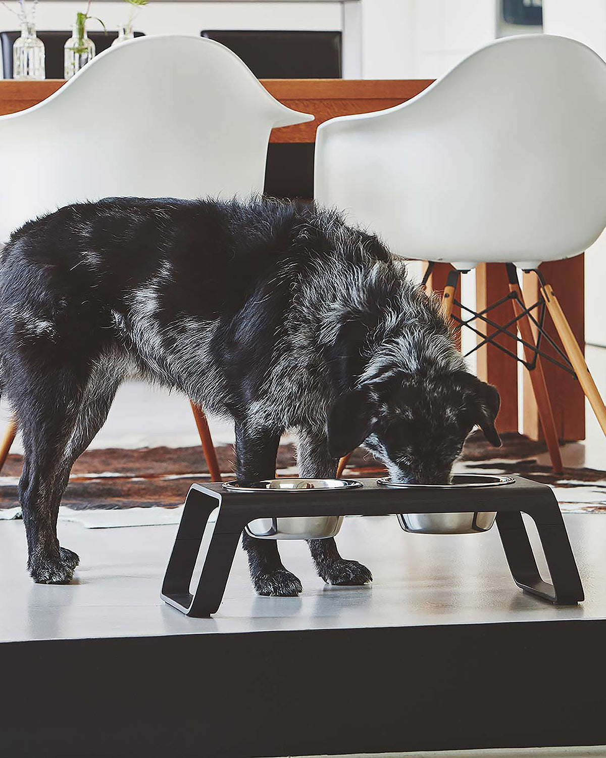 "Modest lines and a minimalist approach combined with contemporary materials outwardly result in a sturdy, firm dog feeder with Scandinavian feel."