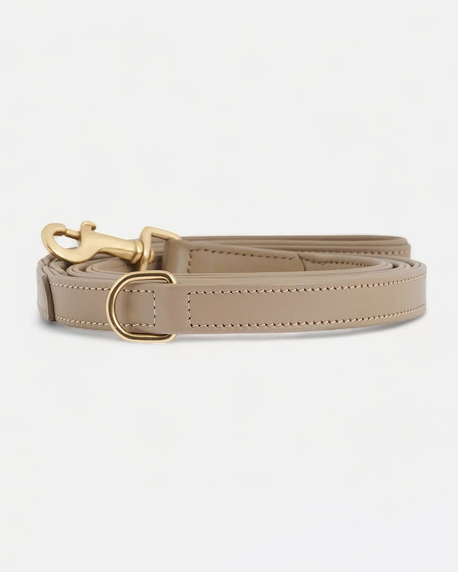 הרצועה עשויה משכבת עור כפולה, אשר מבטיחה עמידות גבוהה ותחושת אחיזה נוחה ויציבה גם בזמן משיכה חזקה. קצוות העור המקופלים והתפירה המדויקת שומרים על גימור מושלם לאורך שנים. אבזרי הפליז המלא – הקרבינות, טבעות ה־D והחיבורים – מוסיפים מראה אלגנטי לצד חוזק ובטיחות מלאה.