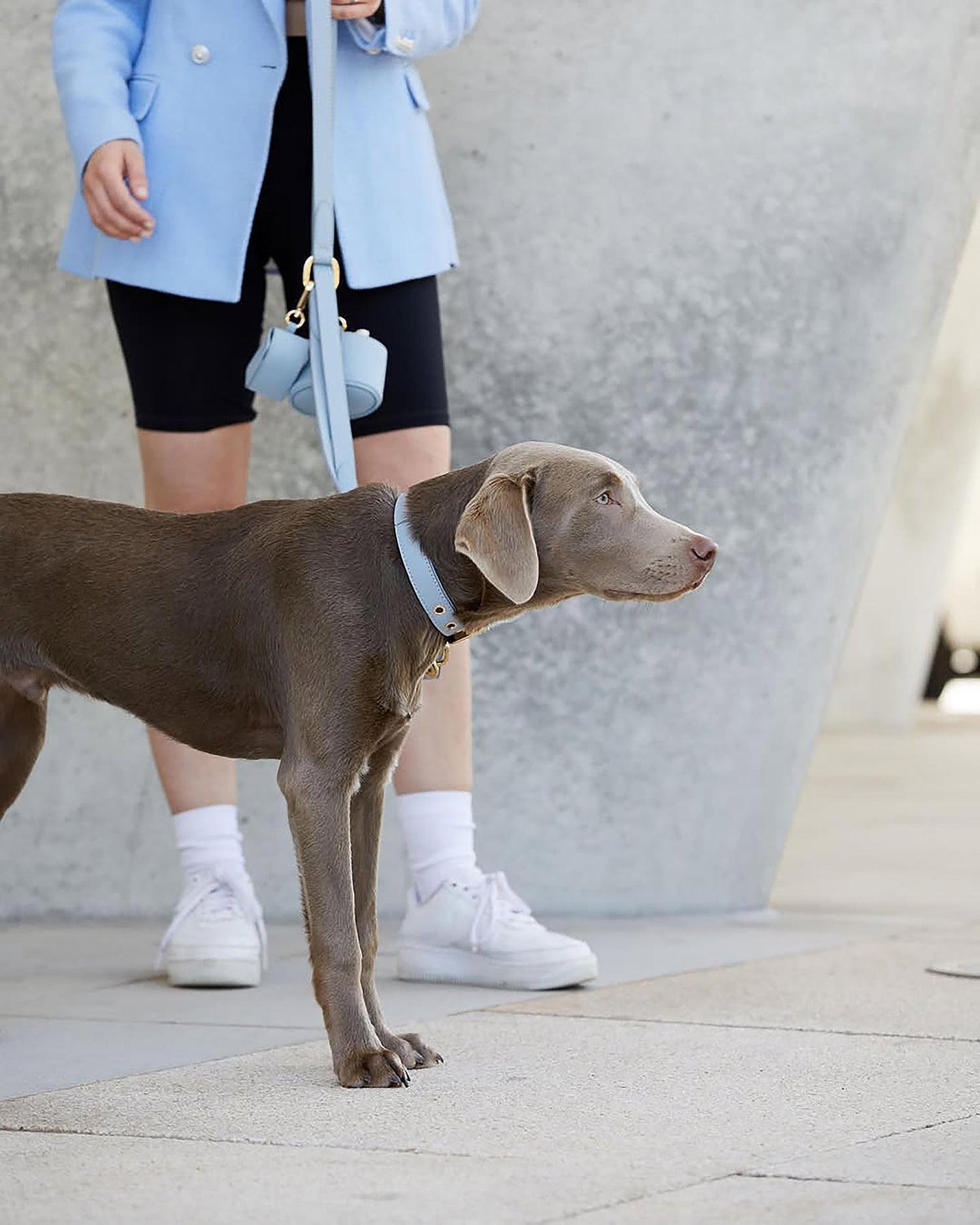 חברו את הרצועה ל- קולר עור הנאפה התואם לרצועה, תלו על הרצועה את נרתיק השקיות לאיסוף צרכים התואם לשליפה נוחה וזמינה של שקיות האיסוף, ותוכלו אף לשלב את נרתיק החטיפים התואם, כך שתמיד יהיה לכם פינוק טרי וזמין - כולם מאותו הליין ובצבעים תואמים.
